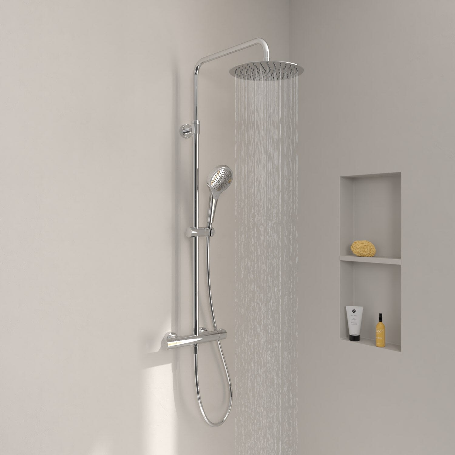 Kronenbach Aufputz-Duschsystem rund mit Thermostat und Kopfbrause Ø 20cm