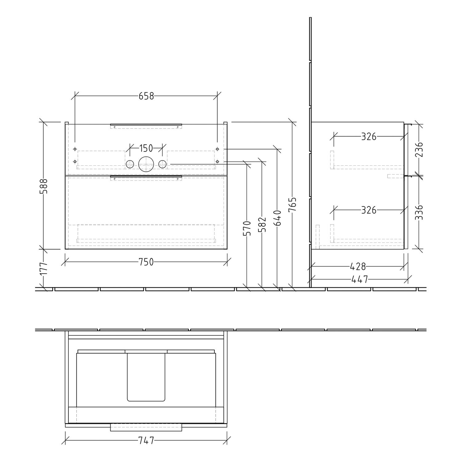 Villeroy & Boch Taro Waschtischunterschrank 75 cm mit 2 Auszügen