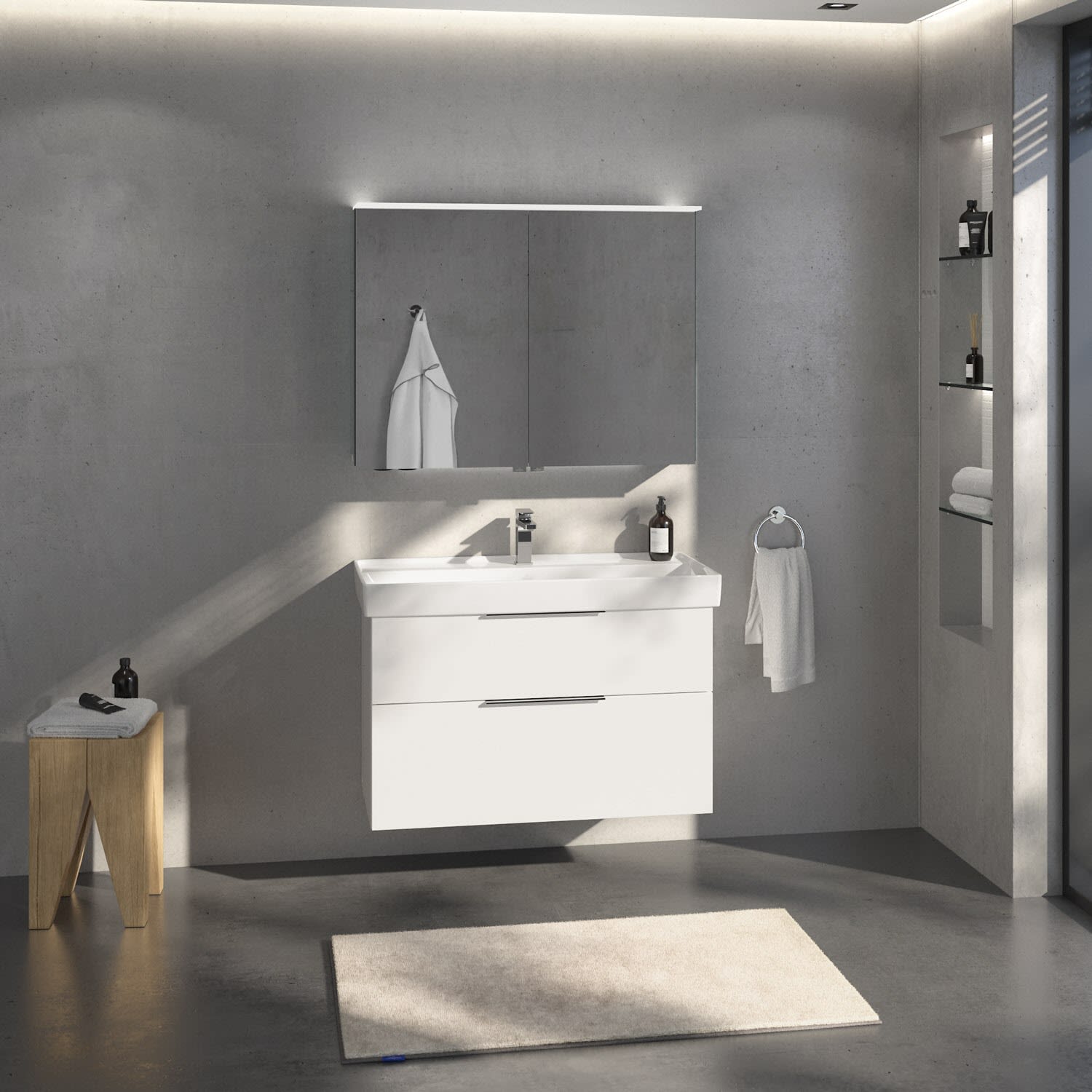 - Der abgebildete Waschtisch und die abgebildete Armatur sowie zusätzlich gezeigtes Zubehör sind nicht im Lieferumfang enthalten. Diese Artikel finden Sie im Zubehör (siehe unten) und können bei Bedarf separat mitbestellt werden.
