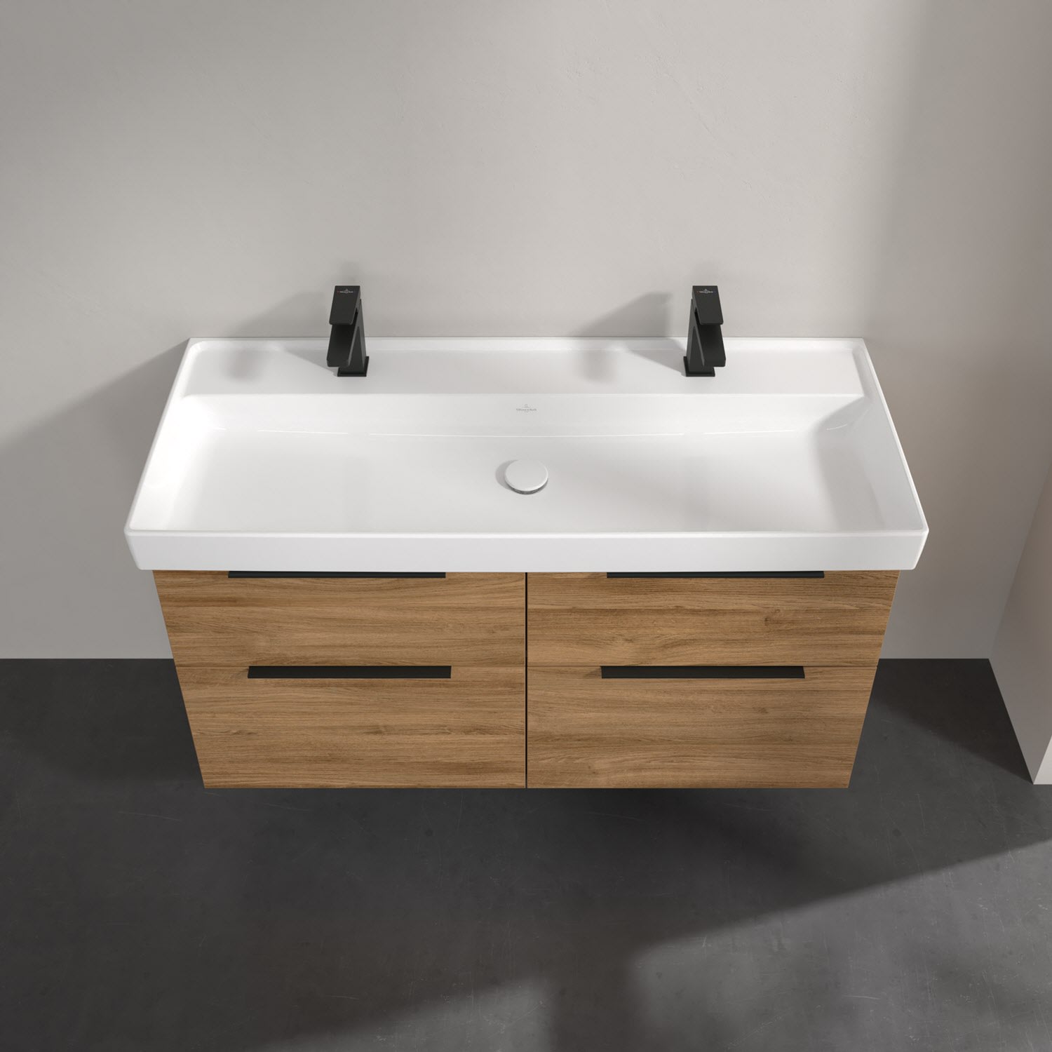 Villeroy & Boch Taro Waschtisch 120 cm mit CeramicPlus Beschichtung, 2 Hahnlöcher, ohne Überlauf