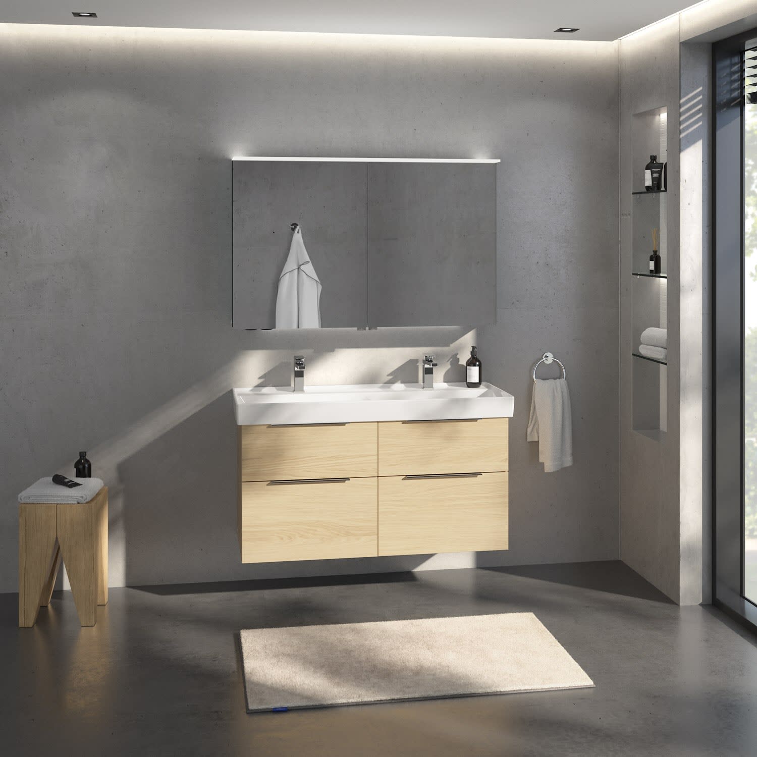 Villeroy & Boch Taro Spiegelschrank 120,7 cm mit 2 Türen, Lichtsegel, Waschplatzbeleuchtung und Vergrößerungsspiegel