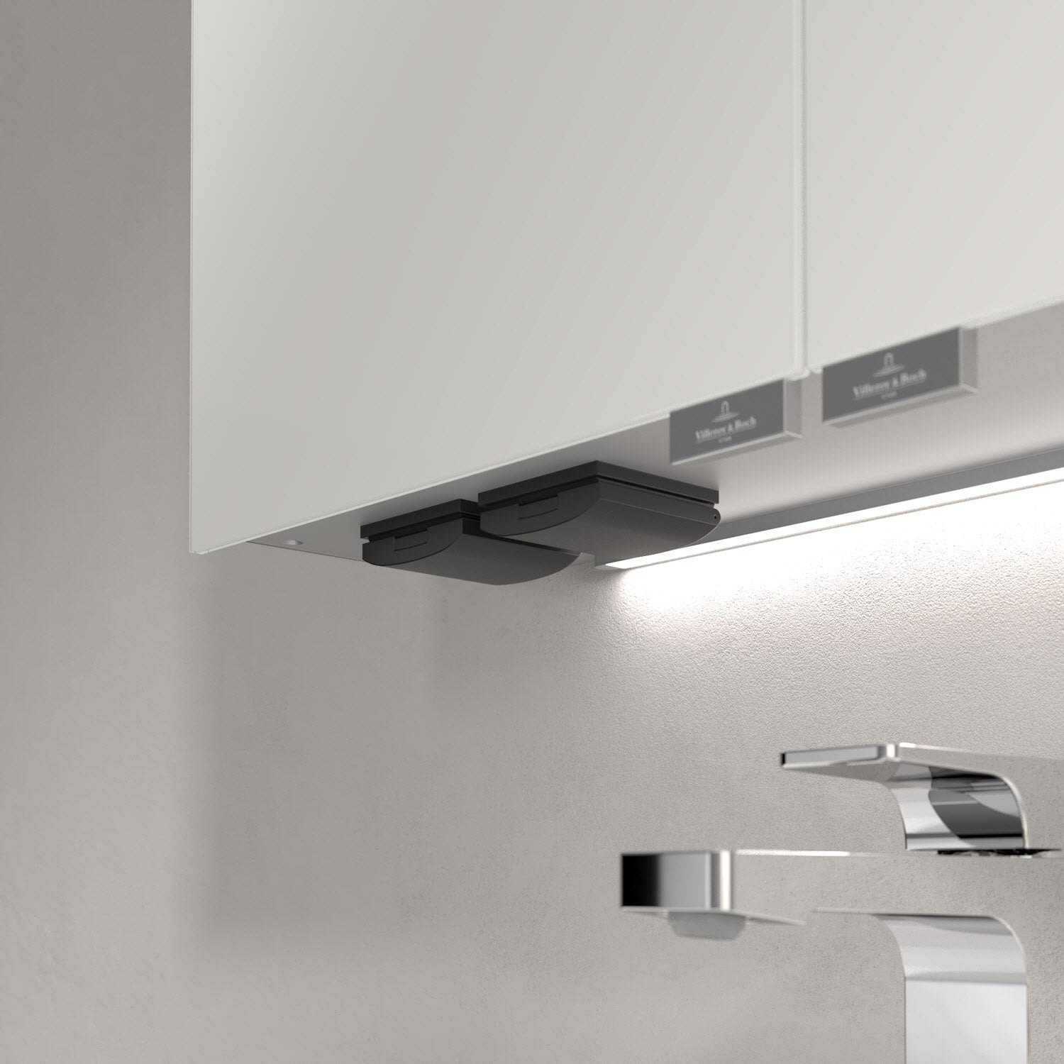 Entdecken Sie den LED-Spiegelschrank aus der Kollektion Taro von Villeroy & Boch – die perfekte Kombination aus Eleganz und Funktionalität für Ihr Badezimmer. Zwei Spiegeltüren und Einlegeböden aus Aluminium bieten viel Platz für Ihre Bad-Accessoires und Utensilien, die elegant hinter den Türen verschwinden und für ein aufgeräumtes Ambiente sorgen. Das elegante horizontale Lichtsegel verleiht dem Schrank eine besonders stilvolle Note und sorgt für blendfreies, natürliches Licht, das durch eine Waschtischbeleuchtung ergänzt wird. Die Beleuchtung ist 3-stufig dimmbar und lässt sich zwischen Warmweiß und Kaltweiß frei einstellen. Besonders praktisch: die intelligente Lichtsteuerung per Touch-Sensorik und die außenliegenden Steckdosen, um z. B. den Fön oder wichtige Elektrogeräte schnell und einfach mit Strom zu versorgen. Verspiegelte Korpusseiten schaffen optisch mehr Raum und runden das Design ab.