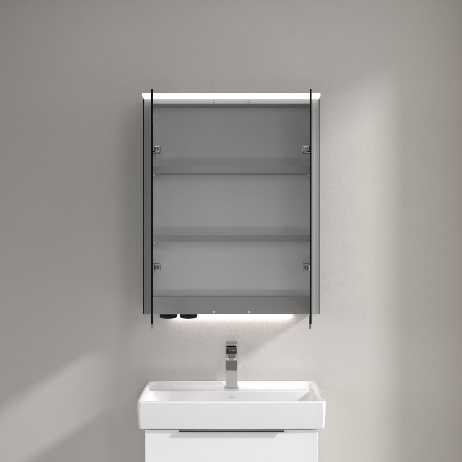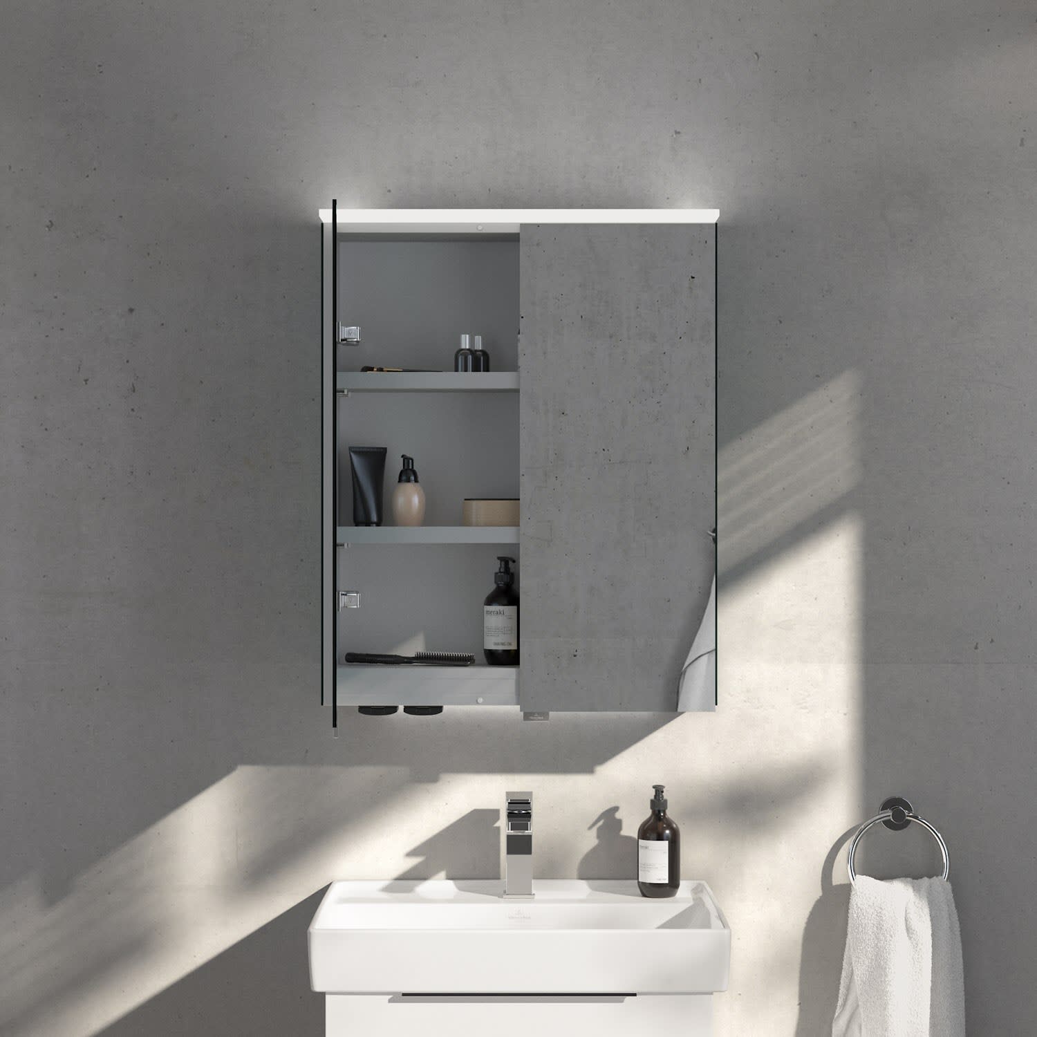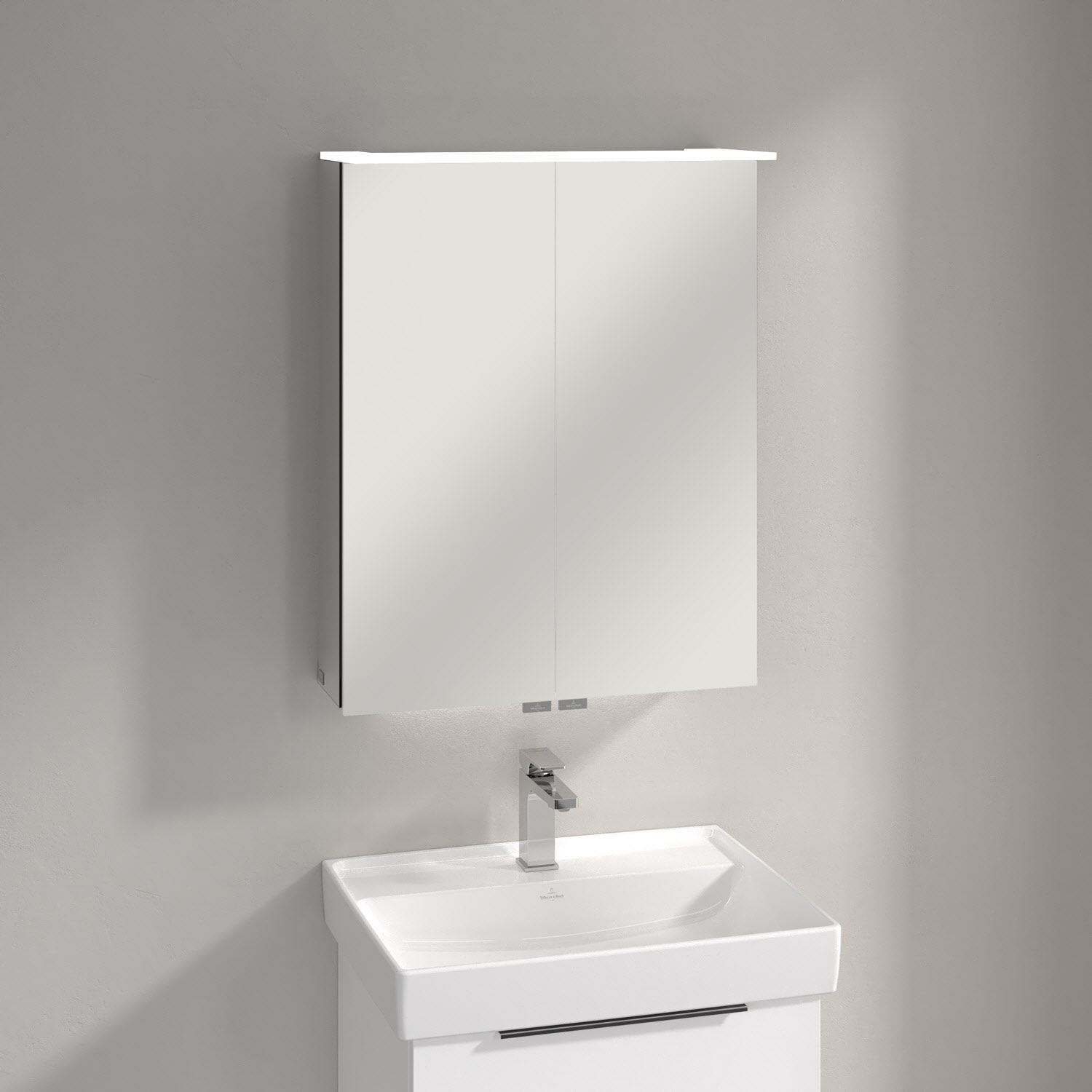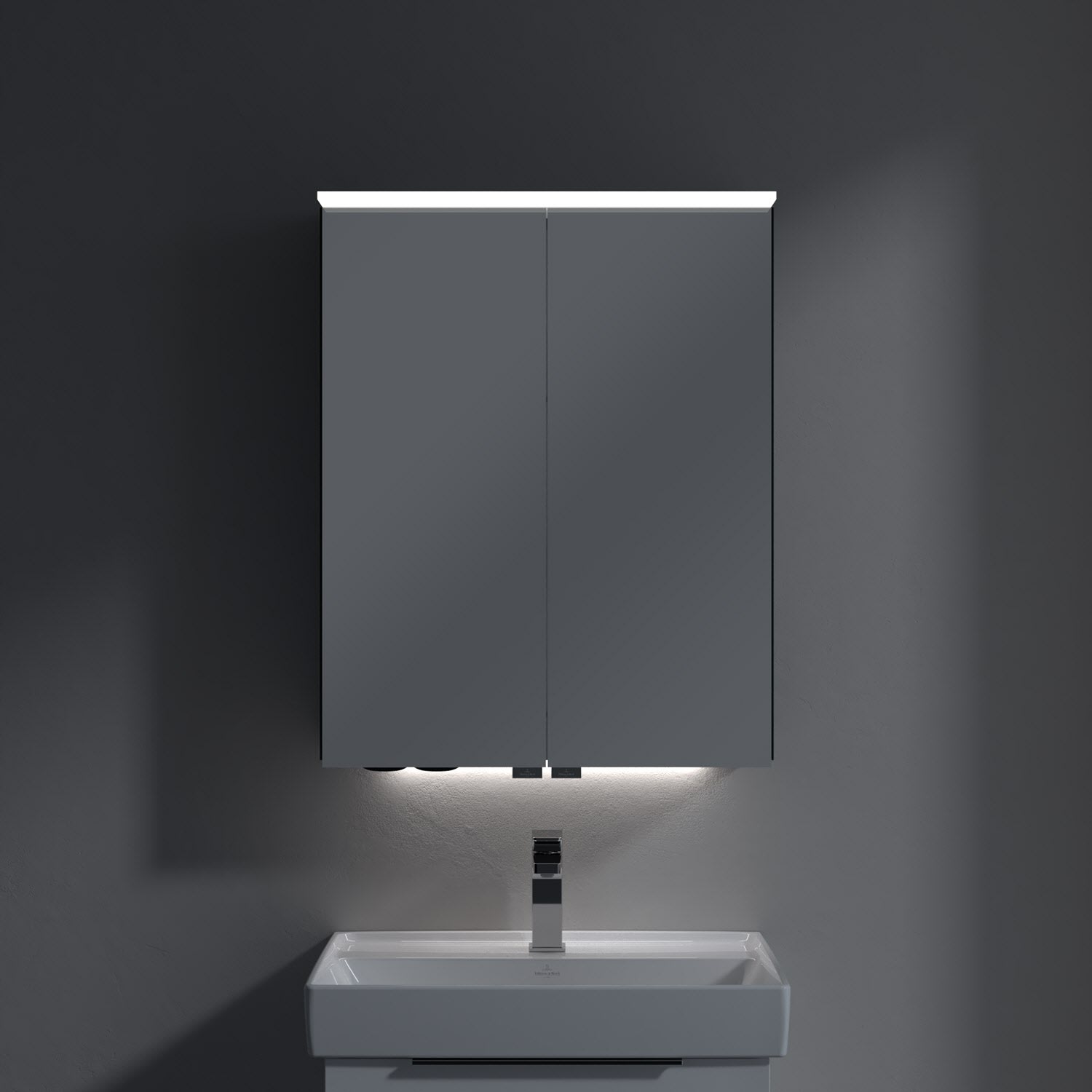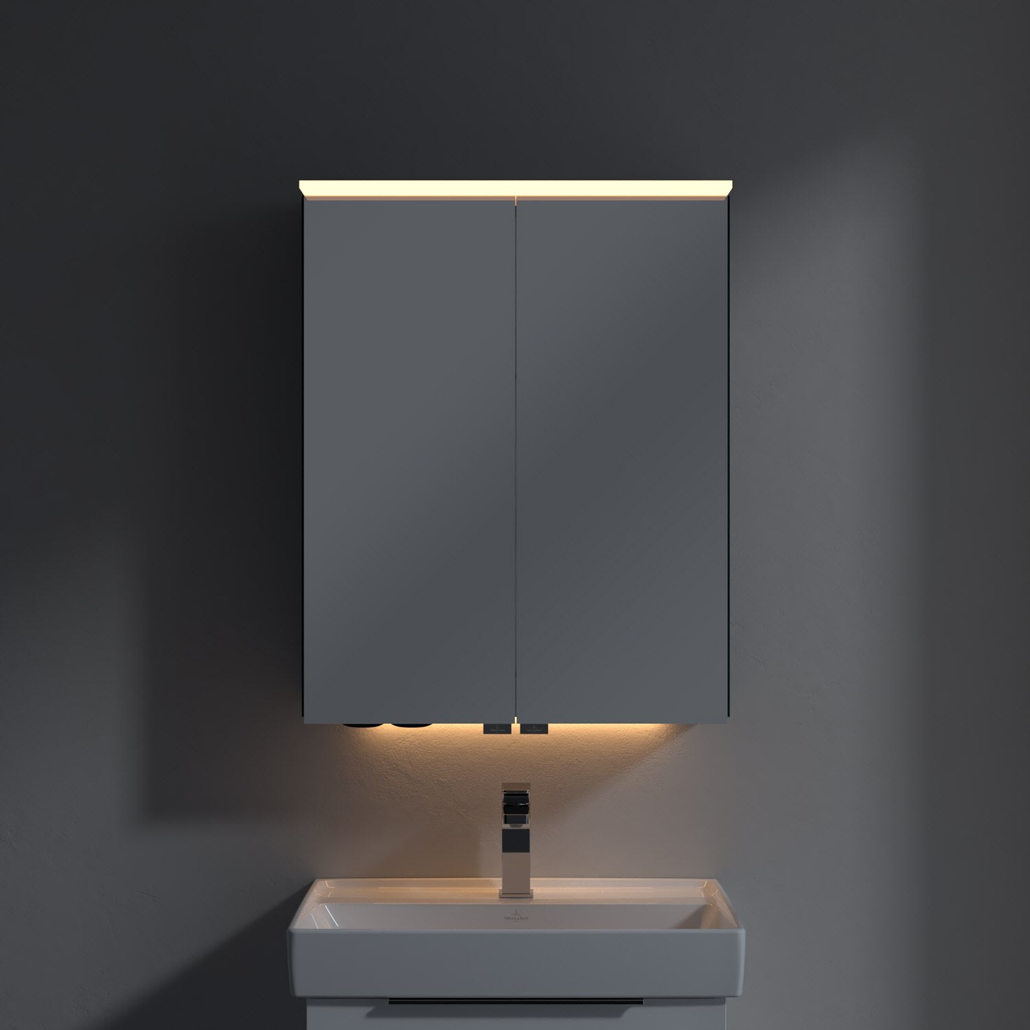 Villeroy & Boch Taro Spiegelschrank 60,7 cm mit 2 Türen, Lichtsegel, Waschplatzbeleuchtung und Vergrößerungsspiegel