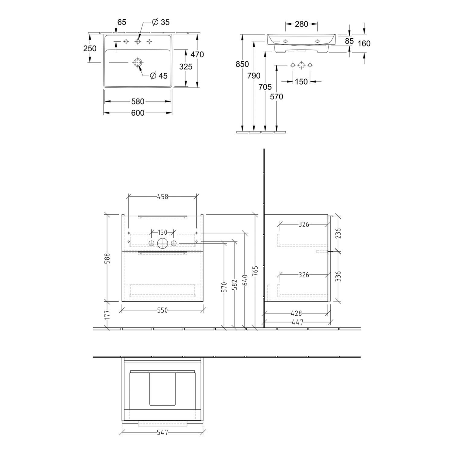 Villeroy & Boch Taro Waschtisch mit Unterschrank 60 cm