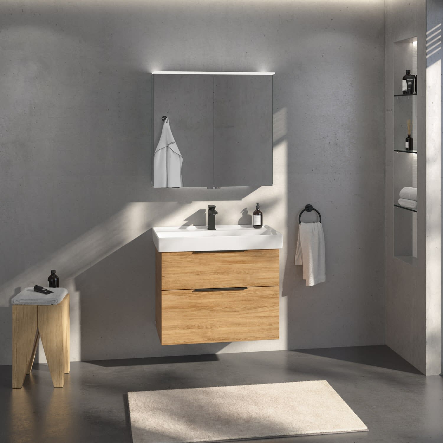 Villeroy & Boch Taro Spiegelschrank 80,7 cm mit 2 Türen, Lichtsegel, Waschplatzbeleuchtung und Vergrößerungsspiegel
