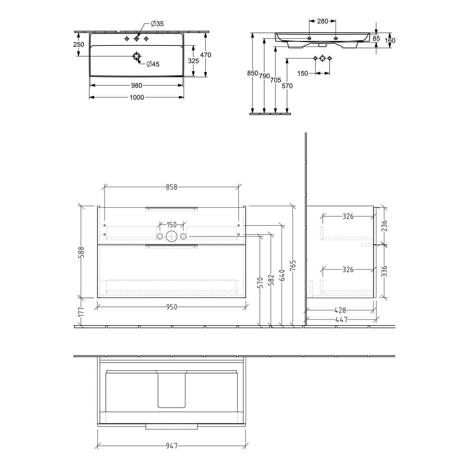 Villeroy & Boch Taro Waschtisch mit Unterschrank 100 cm