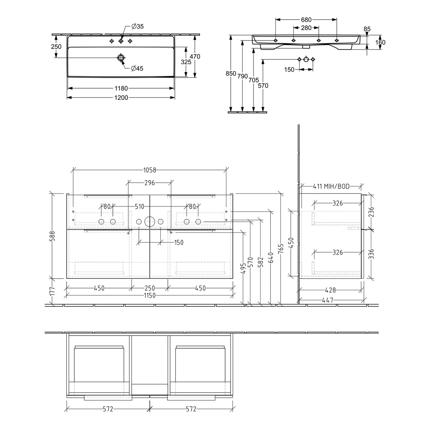 - oberer Auszug mit eckigem Siphonausschnitt
