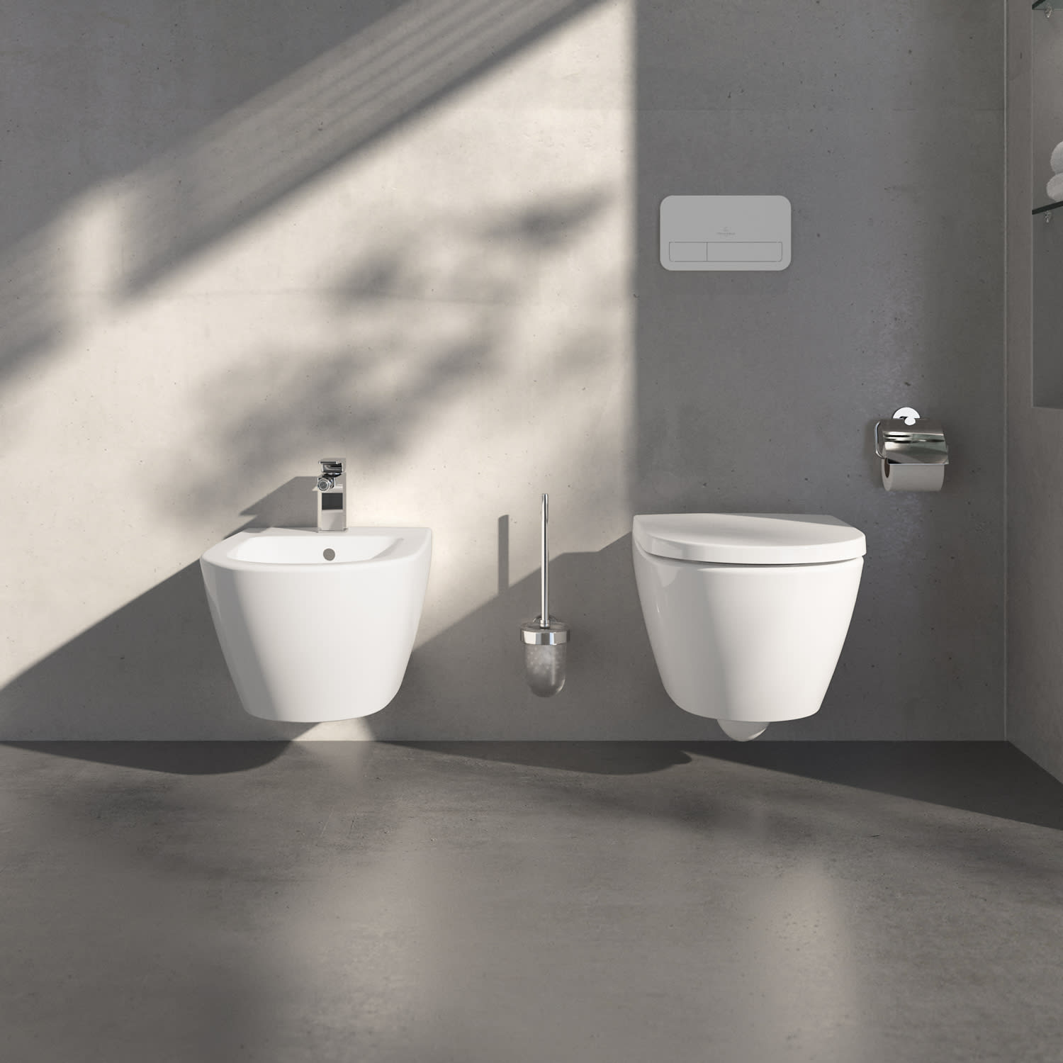 Das ovale Taro Bidet von Villeroy & Boch ist die perfekte Ergänzung zum bekannten WC der Kollektion. Mit seinem zeitlosen Design eignet es sich für höchste ästhetische Ansprüche und fügt sich bestens in jede Badumgebung ein. Denn das Bidet wird mit einer verdeckten Befestigung an die Wand angebracht. Diese führt zu einer einheitlichen Keramikoberfläche, die optisch schön wirkt und leicht zu reinigen ist. Auch die schmutzabweisende Oberfläche ist ein klarer Hygienevorteil – sie lässt Schmutz ganz einfach abfließen. Die seitlichen Flächen des Bidets sind recht breit und ermöglichen so eine besonders komfortable Nutzung.