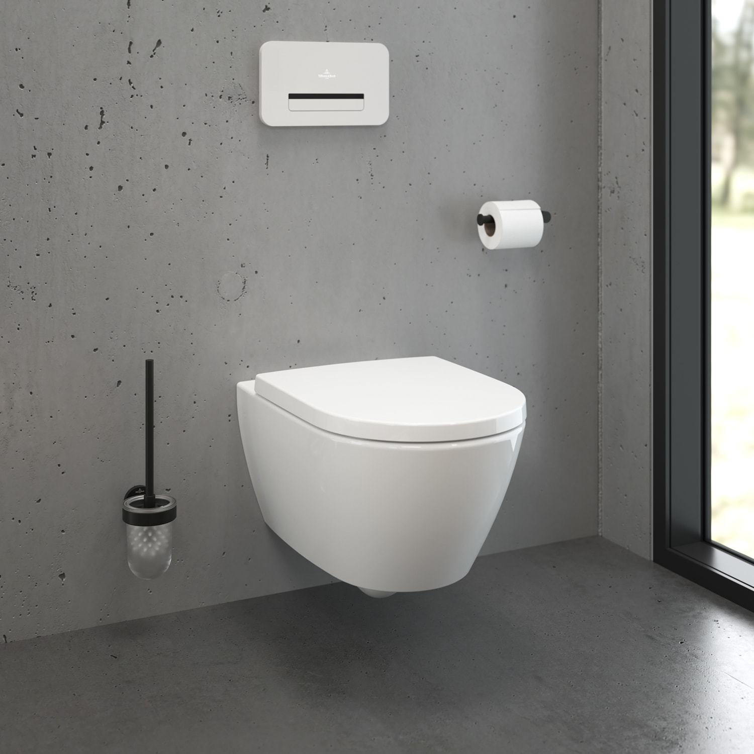 Abgerundet wird das Tiefspül WC mit dem WC-Sitz der Kollektion Taro von Villeroy & Boch, welcher mit harmonischem Design und maximalem Komfort überzeugt. Die schmale und moderne Optik ergänzt das WC perfekt und sorgt für ein zeitloses Gesamtbild. Auch aus funktioneller Sicht kann der WC-Sitz punkten: Dank Absenkautomatik schließt der Deckel extrem leise und er ist für eine einfache und hygienische Reinigung schnell abnehmbar. Besonders lange Freude am Produkt bringen 10 Jahre Hersteller-Garantie!