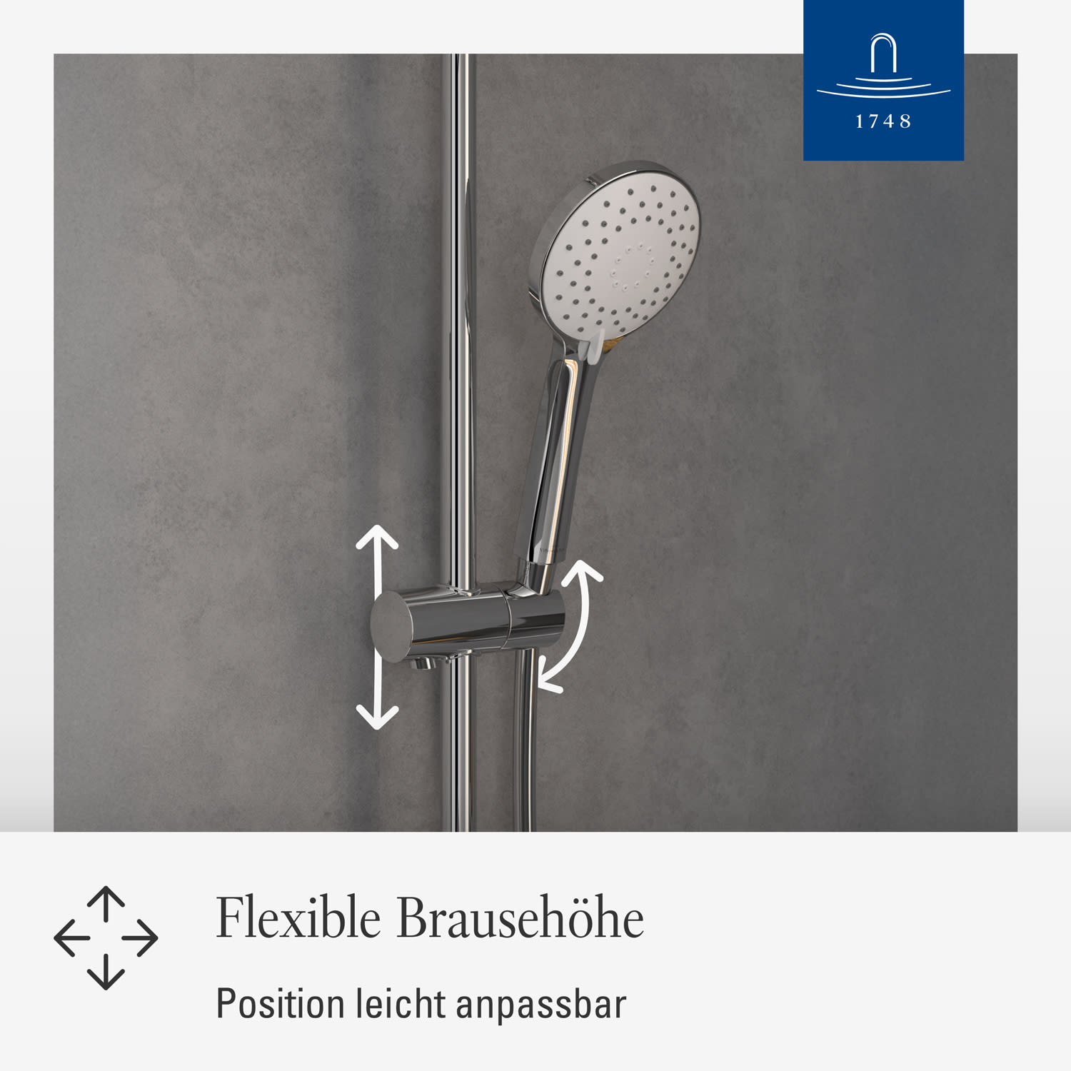 - Handbrausehalter für komfortables Duscherlebnis in Höhe und Winkel verstellbar