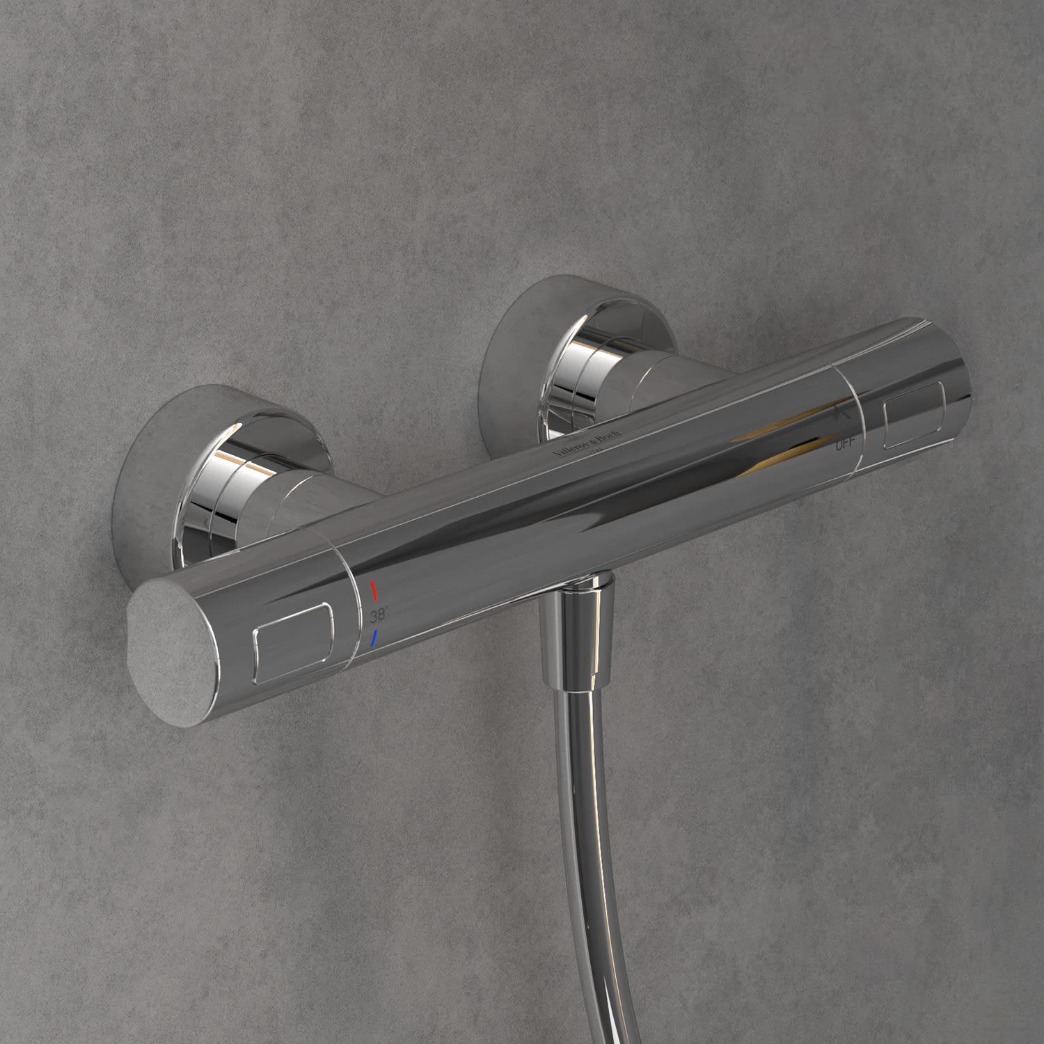 Das Aufputz-Thermostat von Villeroy & Boch aus der Universal Taps Kollektion bietet zahlreiche Komfort-Features, die das Duschen besonders angenehm und sicher machen. So sorgt beispielsweise die innovative CoolTap Technologie dafür, dass die Armatur nie zu heiß wird. Eine zusätzliche Sicherheitssperre bei 38°C Wassertemperatur sorgt für mehr Sicherheit, genau wie die einstellbare Temperaturbegrenzungauf 43°C oder 47°C. Der niedrige Geräuschpegel des Wassers garantiert beim Duschen die nötige Entspannung. Dank des universellen, runden Designs passt das Thermostat ideal zu allen modernen Villeroy & Boch Badkollektionen.