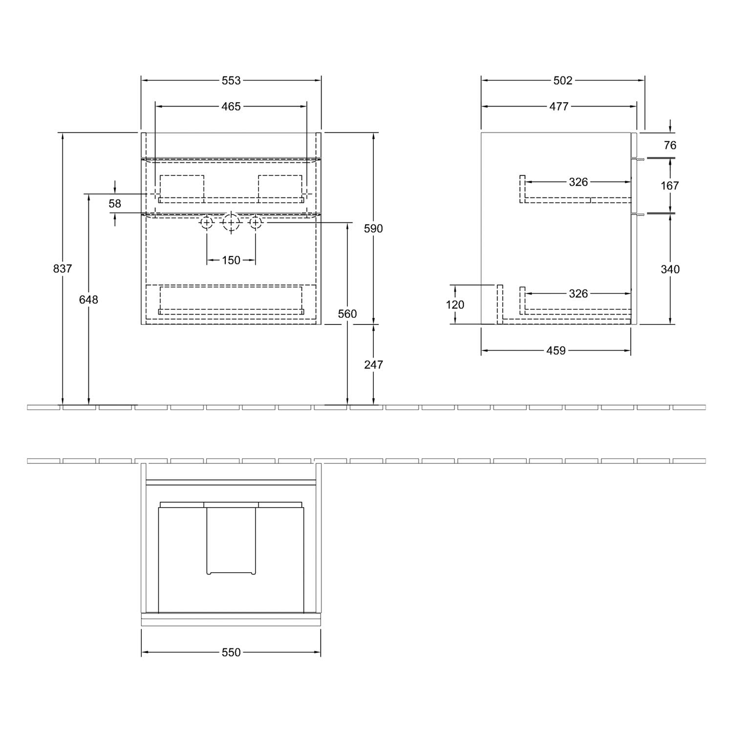 Villeroy & Boch Venticello Waschtischunterschrank 55,3 x 59 cm, 2 Auszüge
