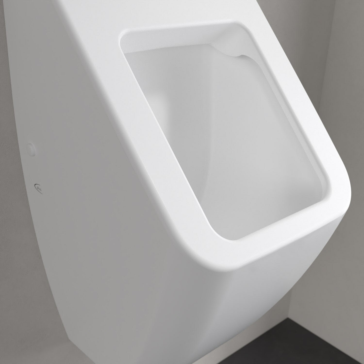 Dieses rechteckige Absaug-Urinal von Villeroy & Boch ist optimal in die große Venticello-Produktfamilie integriert und kann so beispielsweise perfekt mit dem WC kombiniert werden. Es überzeugt mit seinem zeitlosen Design und innovativen Funktionen. Das spülrandlose Design ist für eine Spülung des kompletten Innenbeckens optimiert. So gelingt eine präzise und spritzfreie Wasserführung bis direkt unter den Beckenrand. Durch seine spritzhemmenden Eigenschaften wird zudem die Reinigung erleichtert. Denn die raffinierte Ableitung bricht den Urinstrahl auf und führt ihn direkt in den Ablauf. Das wandhängende Urinal eignet sich für eine Montage mit Deckel.
