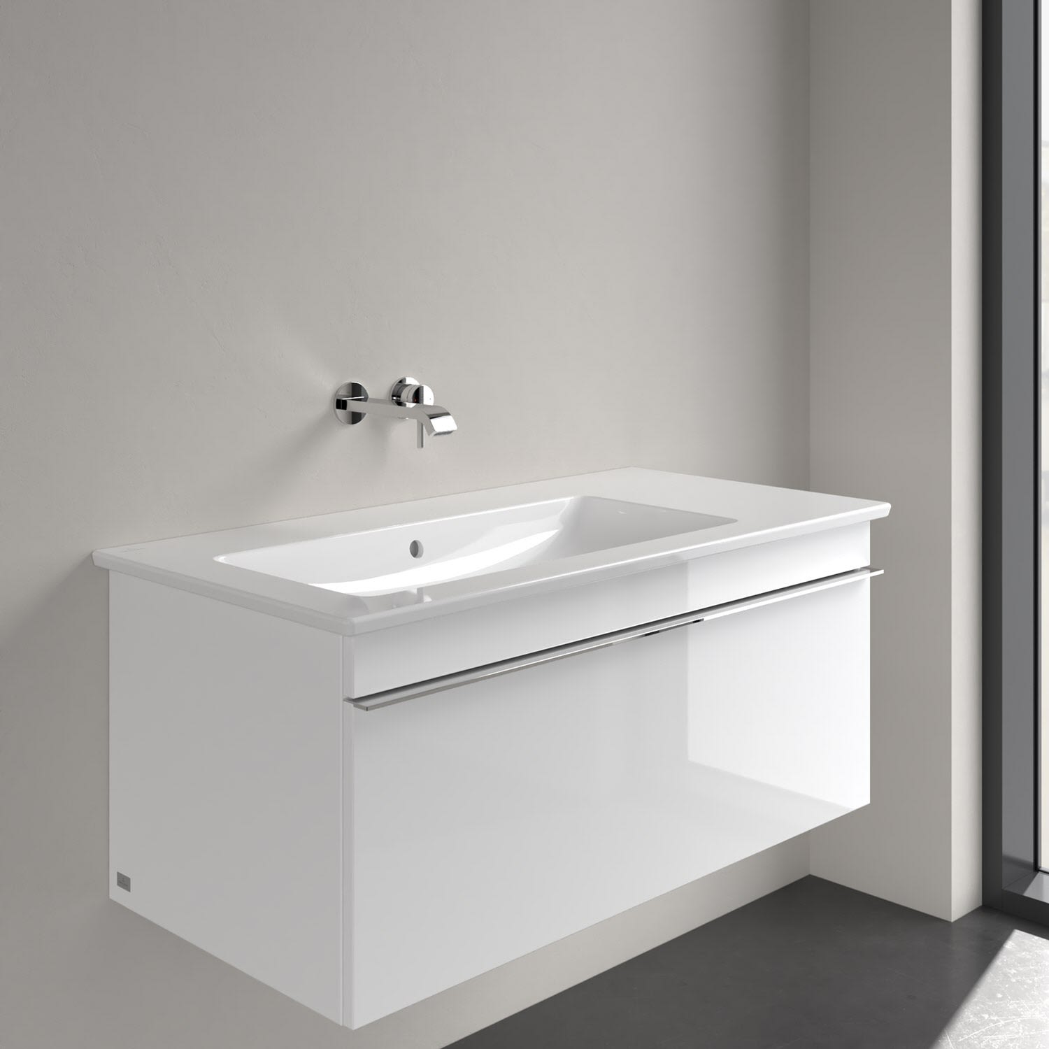 Der rechteckige Venticello Schrankwaschtisch von Villeroy & Boch überzeugt auf ganzer Linie: sehr geradlinig und leicht im Design durch die extrem dünne Zarge. Sowohl die beiden Seiten als auch die besonders großzügige Hahnlochbank können als Ablagefläche für Seifenspender, Zahnputzbecher und andere Badutensilien genutzt werden. Für ein perfektes Erscheinungsbild kann der klar gestaltete Waschtisch mit einem passenden Möbel der Kollektion Venticello ergänzt werden.
