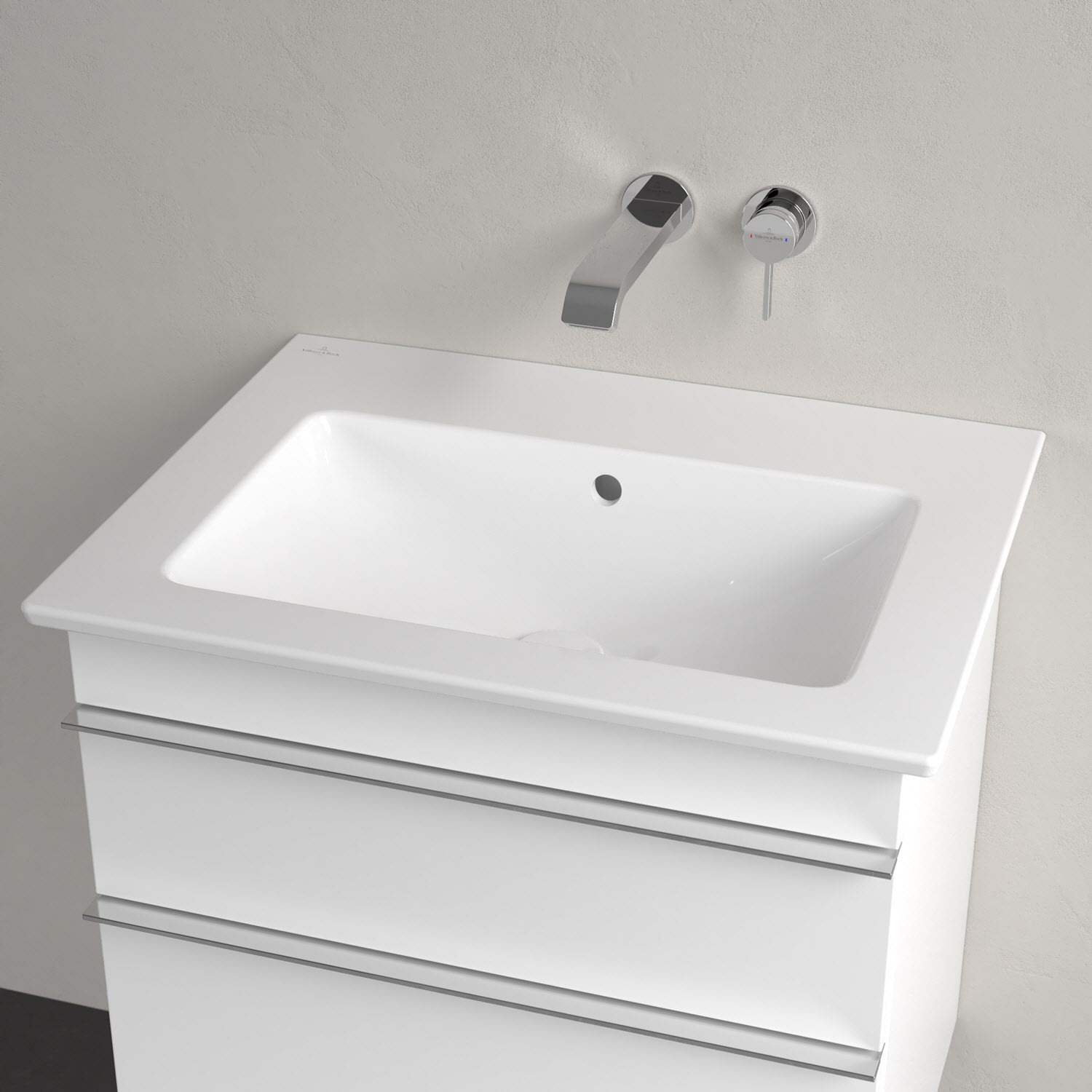 Der rechteckige Venticello Waschtisch von Villeroy & Boch überzeugt auf ganzer Linie: sehr geradlinig und leicht im Design durch die extrem dünne Zarge. Sowohl die beiden Seiten als auch die besonders großzügige Hahnlochbank können als Ablagefläche für Seifenspender, Zahnputzbecher und andere Badutensilien genutzt werden. Für ein perfektes Erscheinungsbild kann der klar gestaltete Waschtisch mit einem passenden Möbel der Kollektion Venticello ergänzt werden.