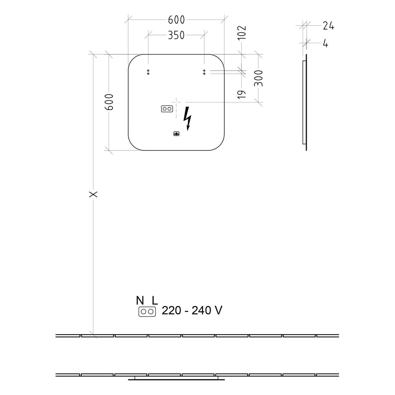 Villeroy & Boch More to See Lite Lichtspiegel 60 x 60 cm