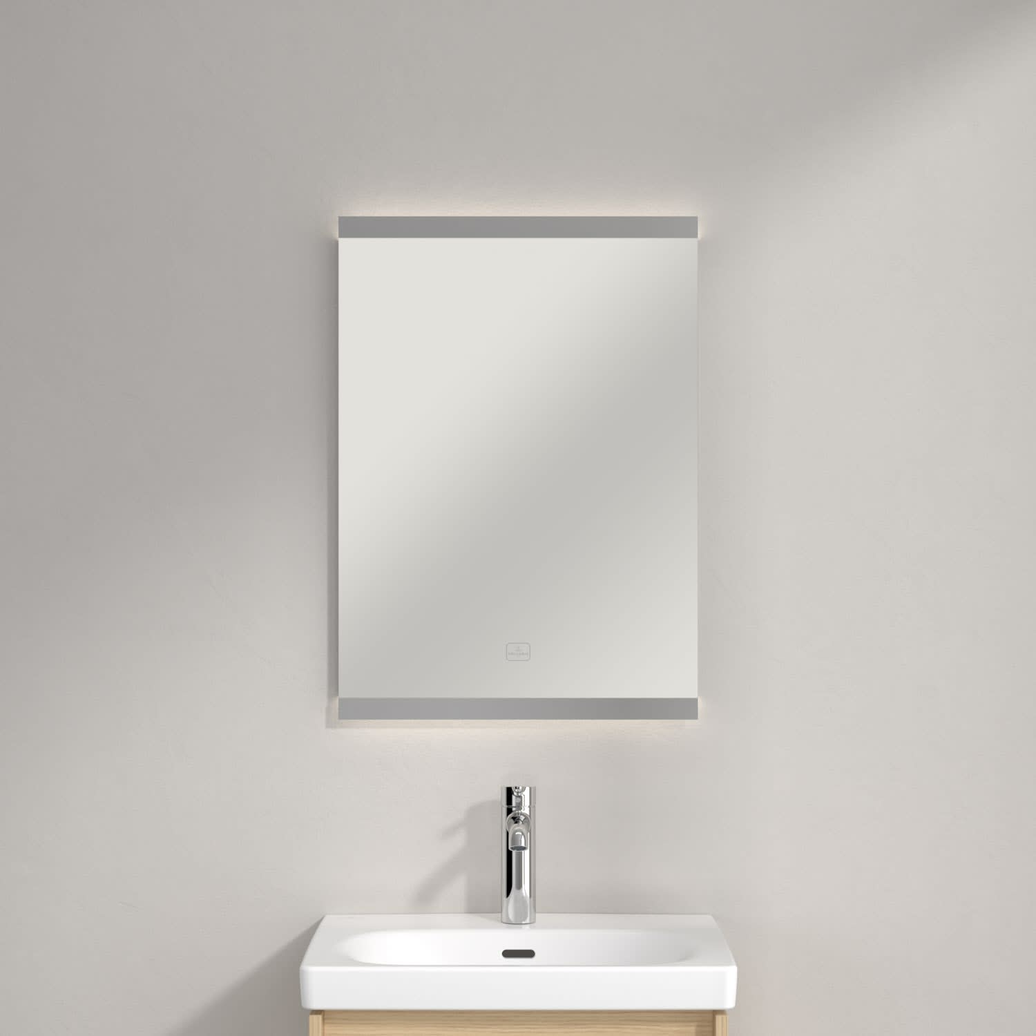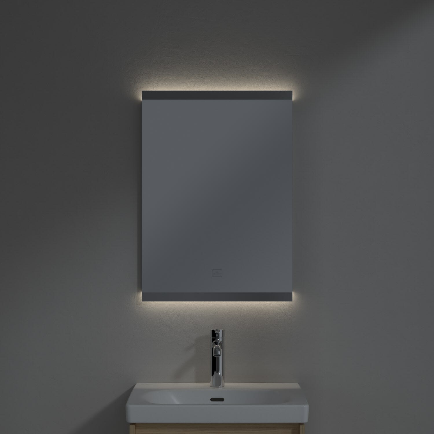 Perfekte Ausleuchtung in modernem, geradlinigem Design - Der eckige Spiegel aus der Kollektion More to See von Villeroy & Boch überzeugt durch sein minimalistisches Design und wird durch die umlaufende, stufenlos dimmbare LED-Beleuchtung zu einem echten Highlight im Bad.