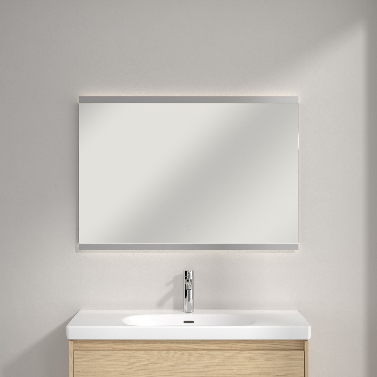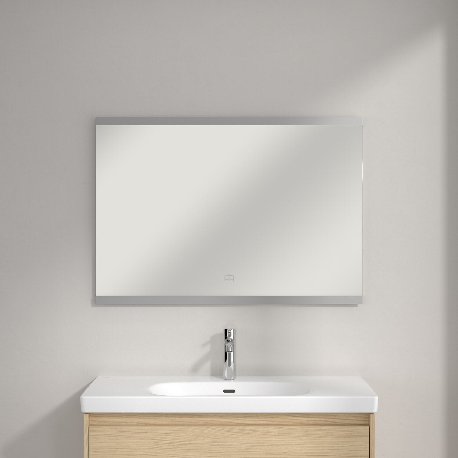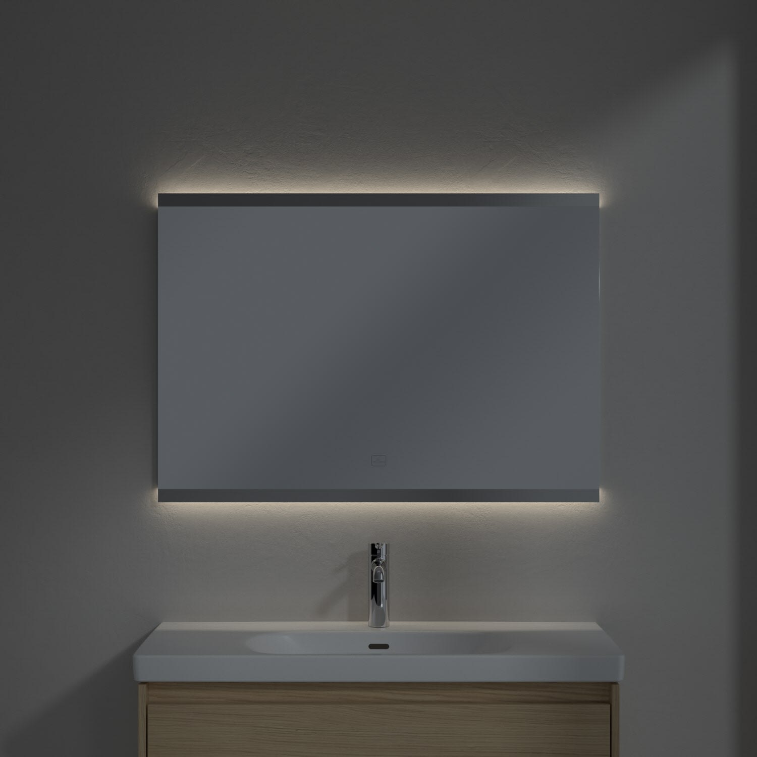 Perfekte Ausleuchtung in modernem, geradlinigem Design - Der eckige Spiegel aus der Kollektion More to See von Villeroy & Boch überzeugt durch sein minimalistisches Design und wird durch die umlaufende, stufenlos dimmbare LED-Beleuchtung zu einem echten Highlight im Bad.
