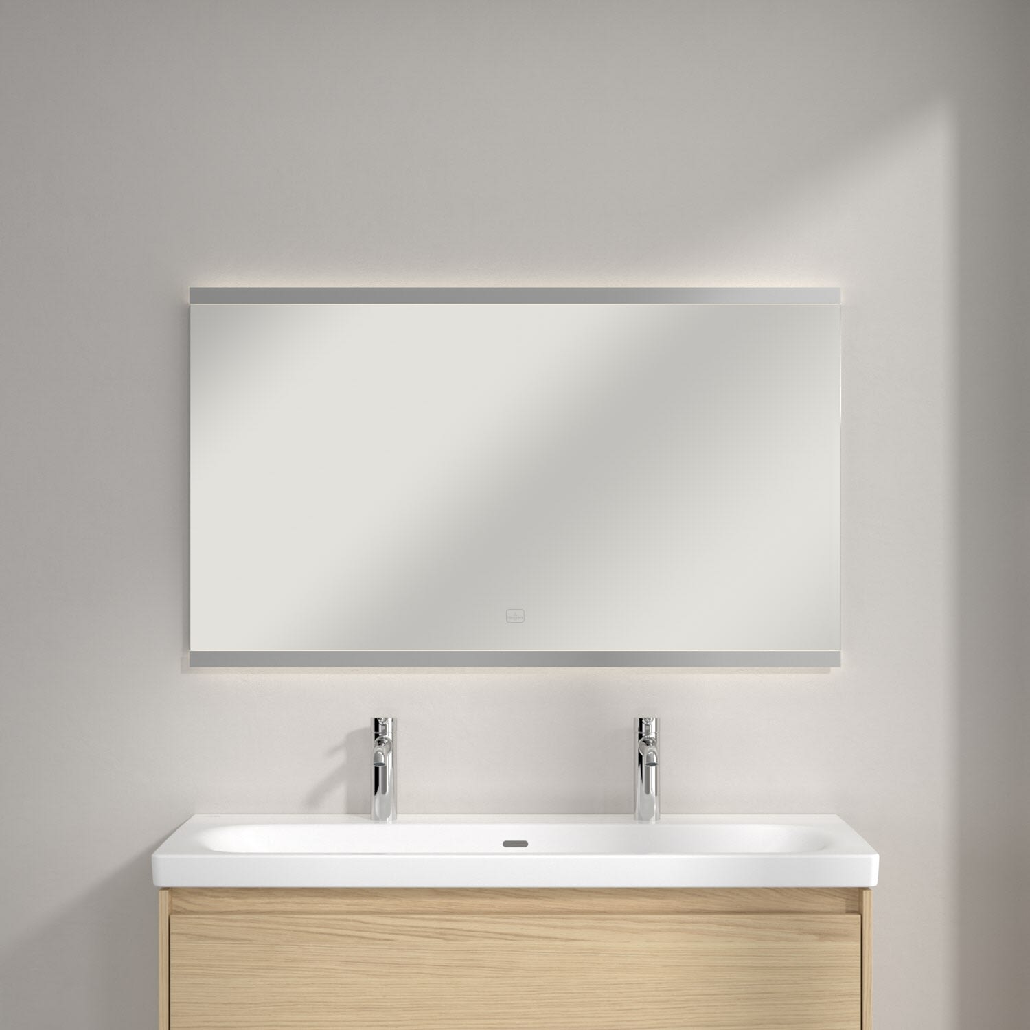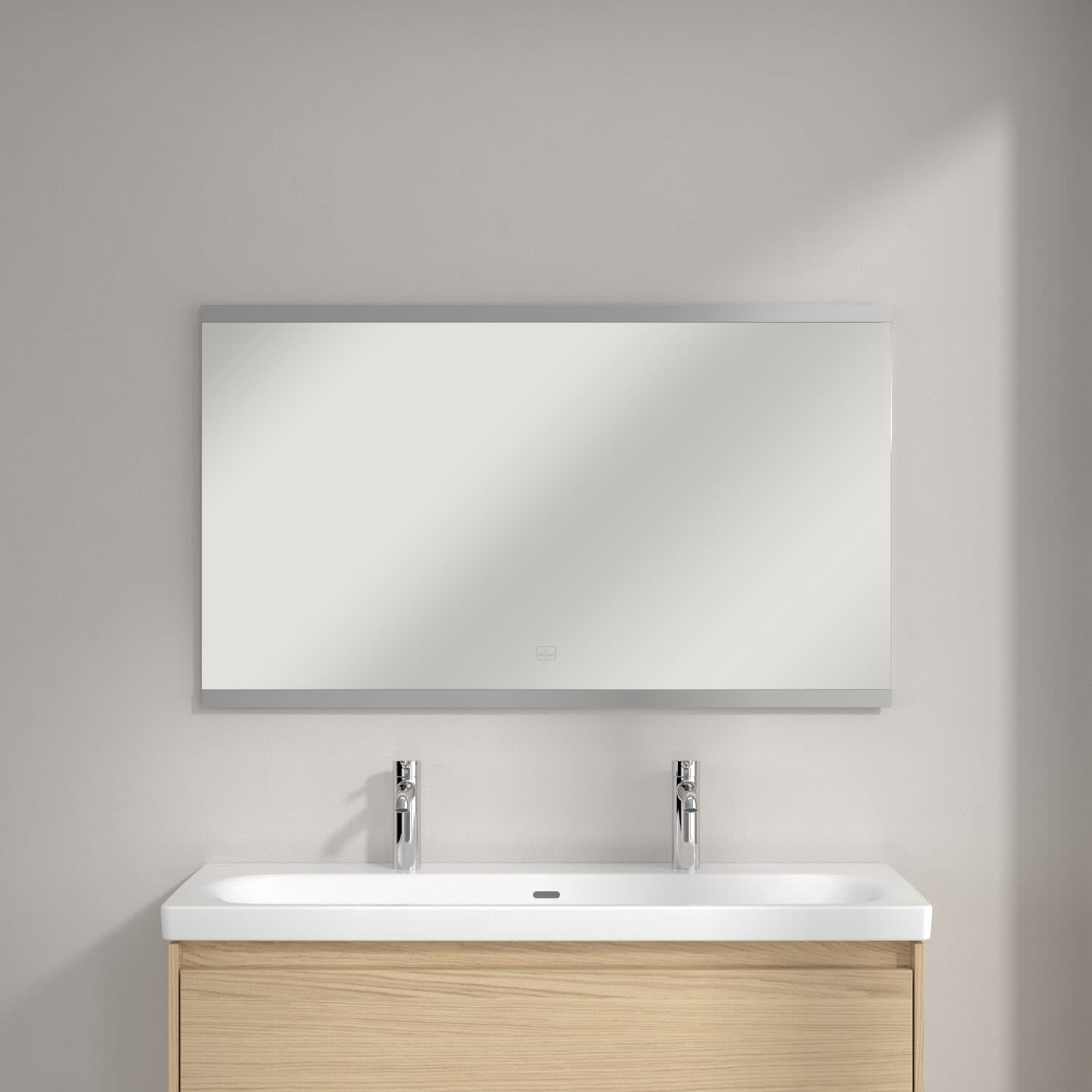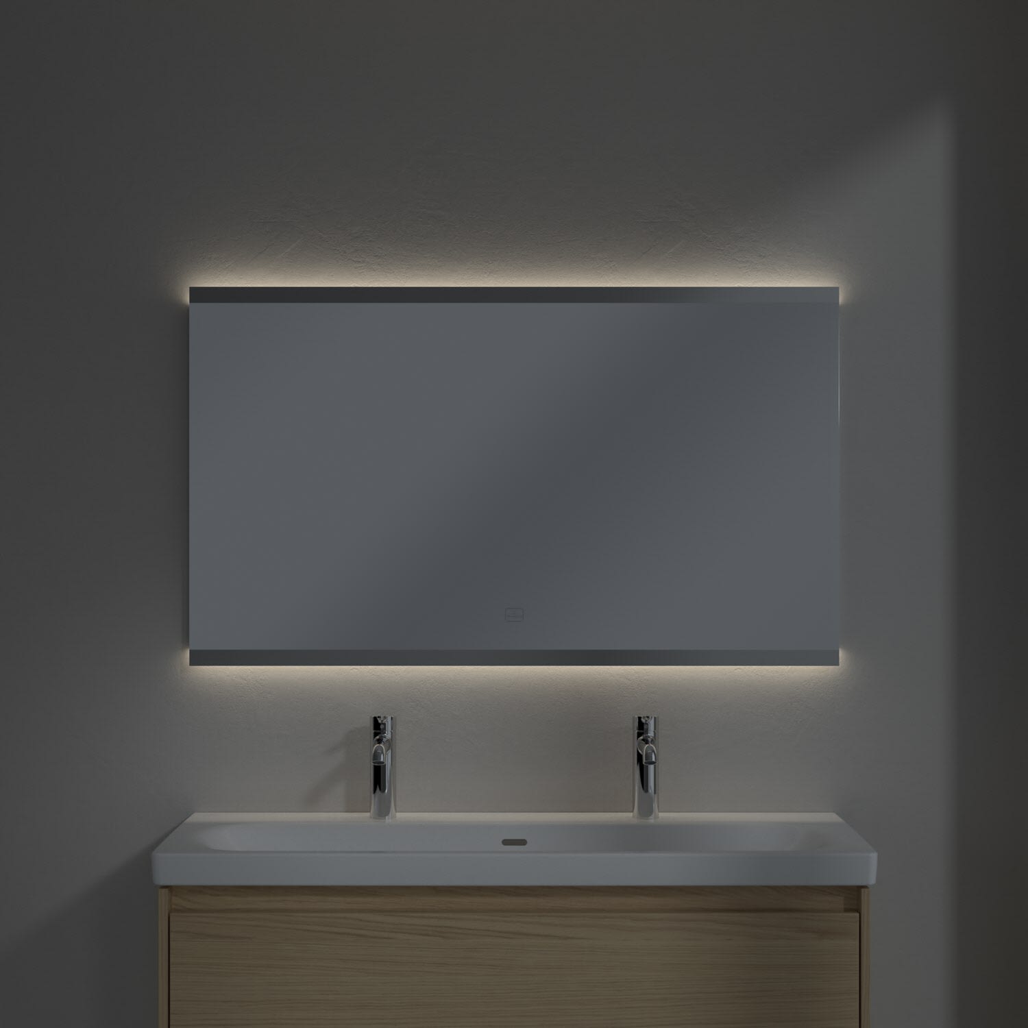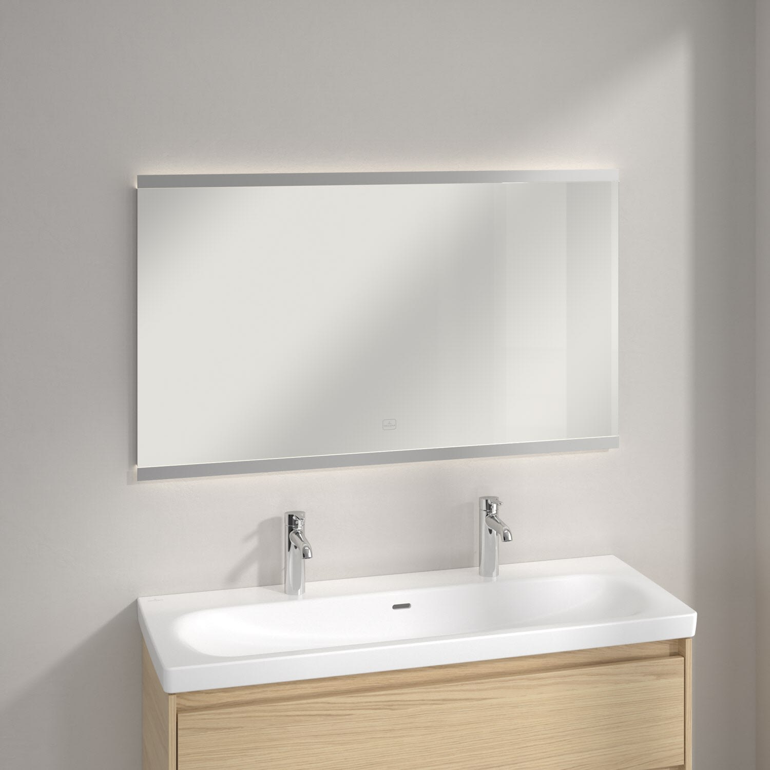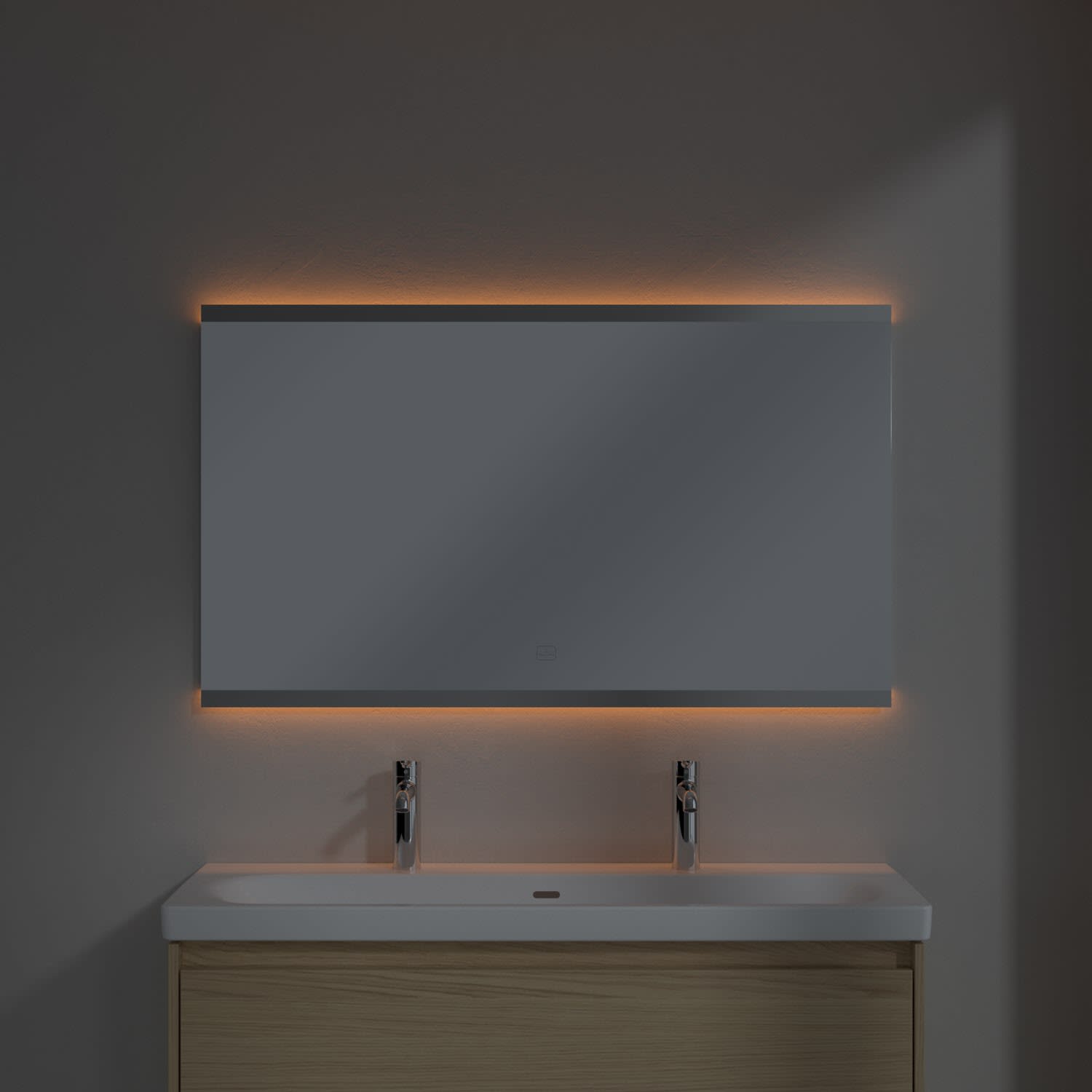 Perfekte Ausleuchtung in modernem, geradlinigem Design - Der eckige Spiegel aus der Kollektion More to See von Villeroy & Boch überzeugt durch sein minimalistisches Design und wird durch die umlaufende, stufenlos dimmbare LED-Beleuchtung zu einem echten Highlight im Bad.