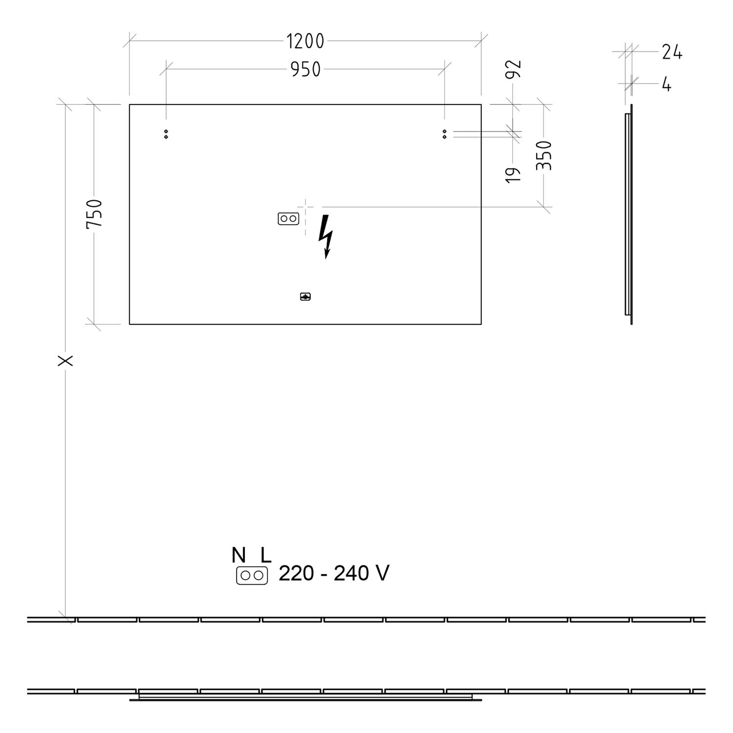 Megabad Profi Collection Living Badspiegel 120 x 80 cm mit LED-Hintergrundbeleuchtung, Dimmer und Spiegelheizung
