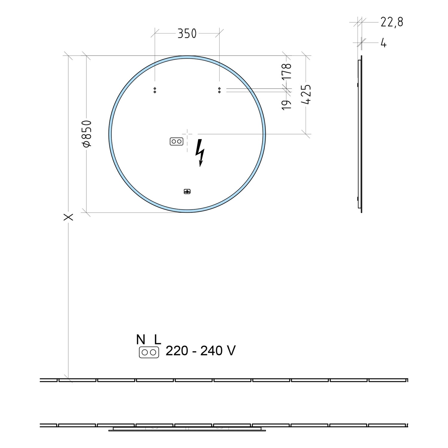 Die Lichtfarbe lässt sich flexibel zwischen Kalt- und Warmweiß einstellen, die integrierte Memory-Funktion speichert automatisch die bevorzugte Helligkeit und Farbtemperatur. Über einen Sensor lässt sich der Spiegel bequem ein- und ausschalten und die Helligkeit individuell dimmen.