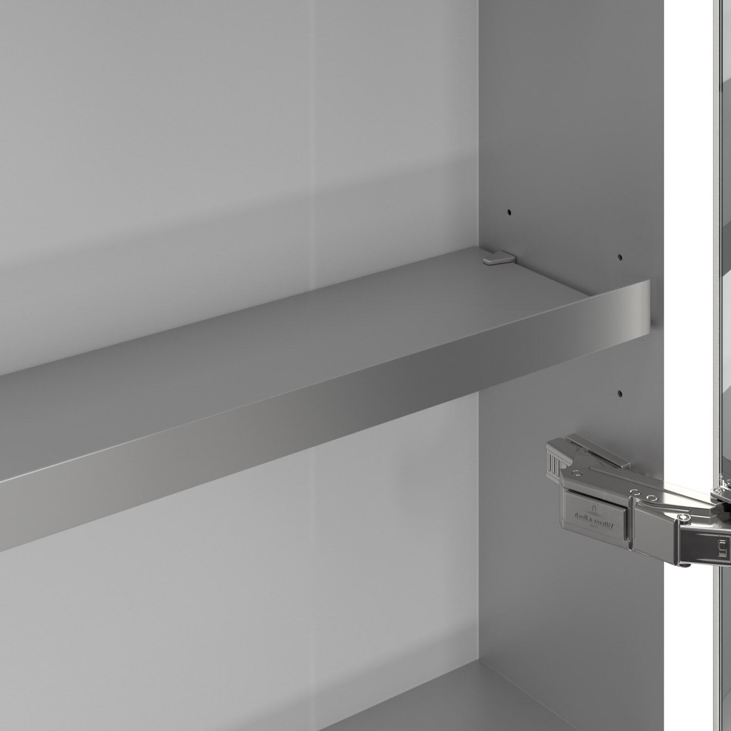 - praktische Extras: Aluminiumeinlegeböden mit praktischem Kippschutz, Vergrößerungsspiegel & Magnetleiste