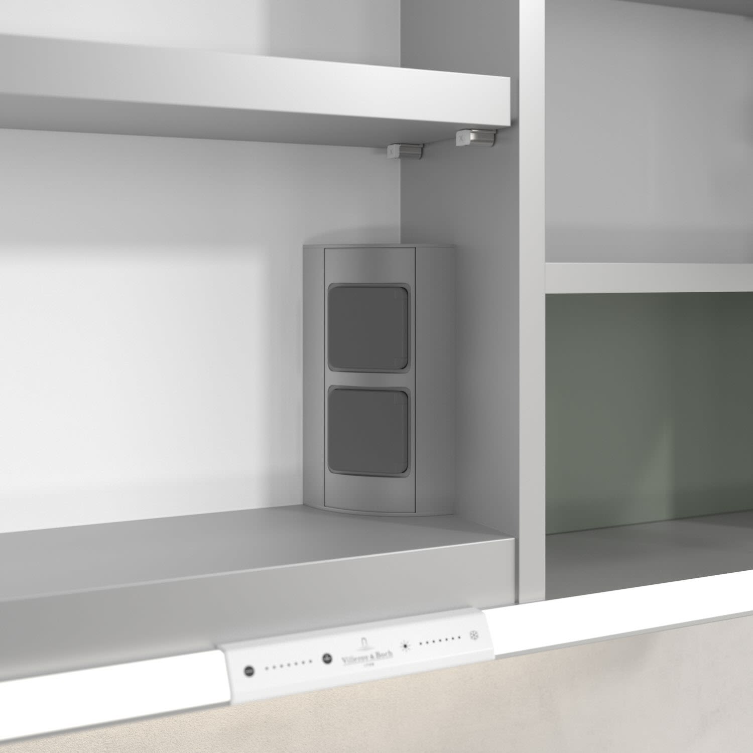 - praktische Extras: Aluminiumeinlegeböden mit praktischem Kippschutz, Vergrößerungsspiegel & Magnetleiste
