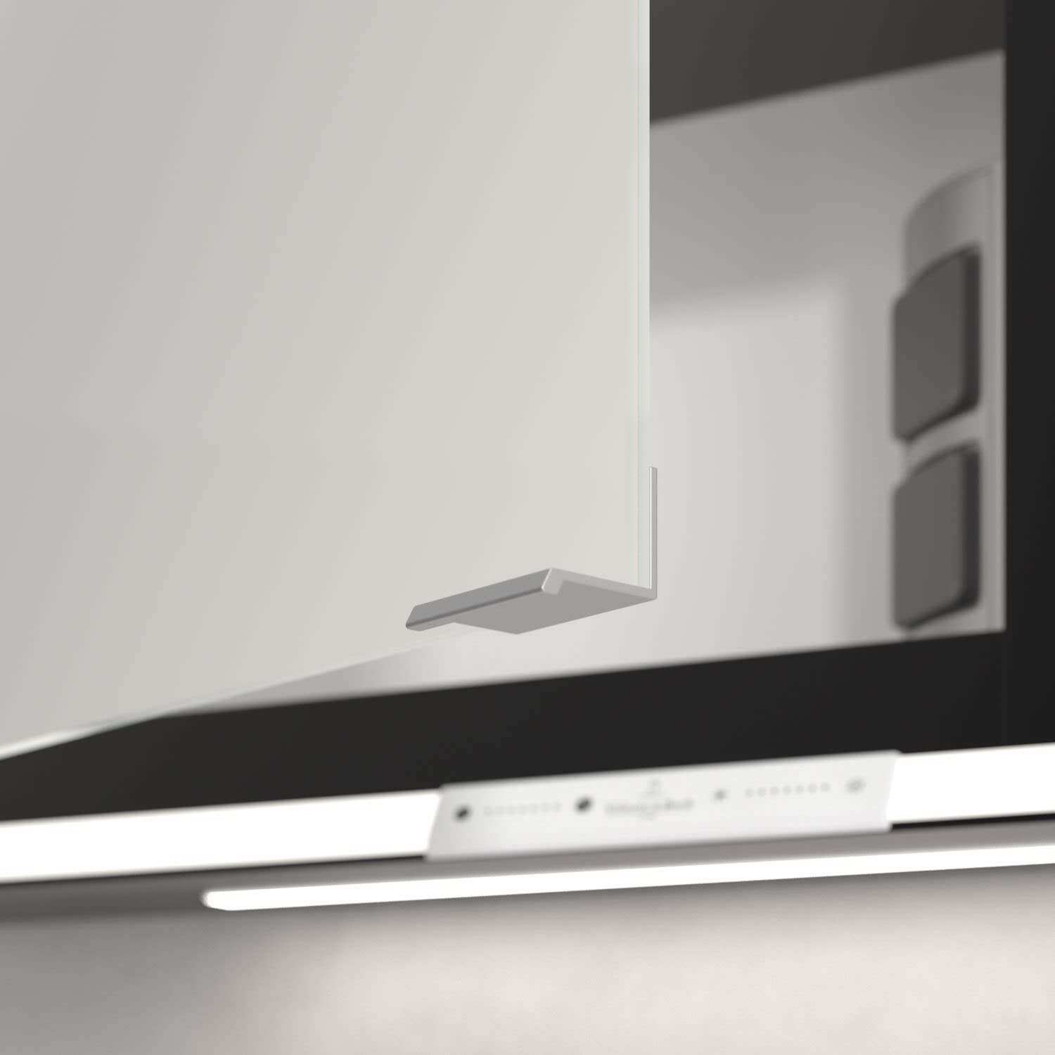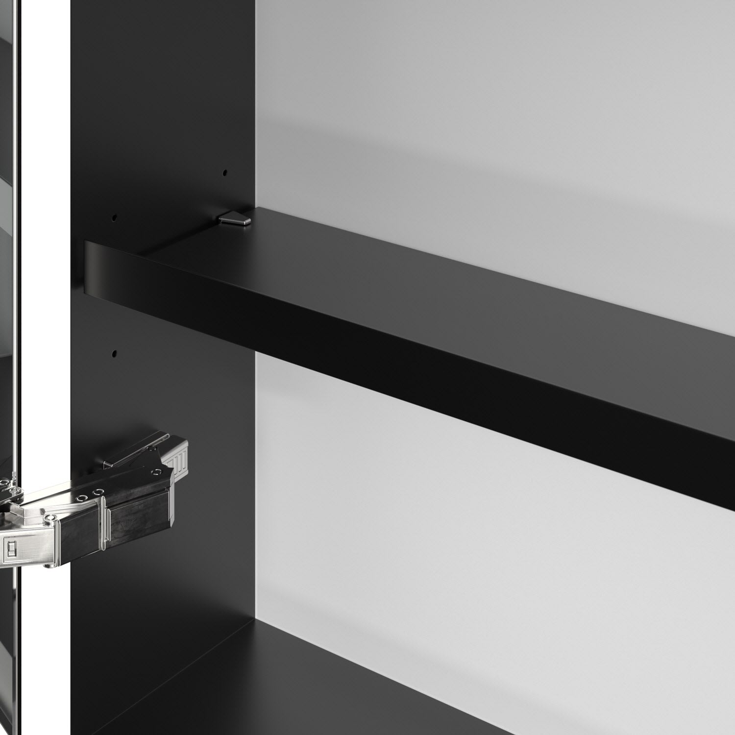 - praktische Extras: Aluminiumeinlegeböden mit praktischem Kippschutz, Vergrößerungsspiegel & Magnetleiste