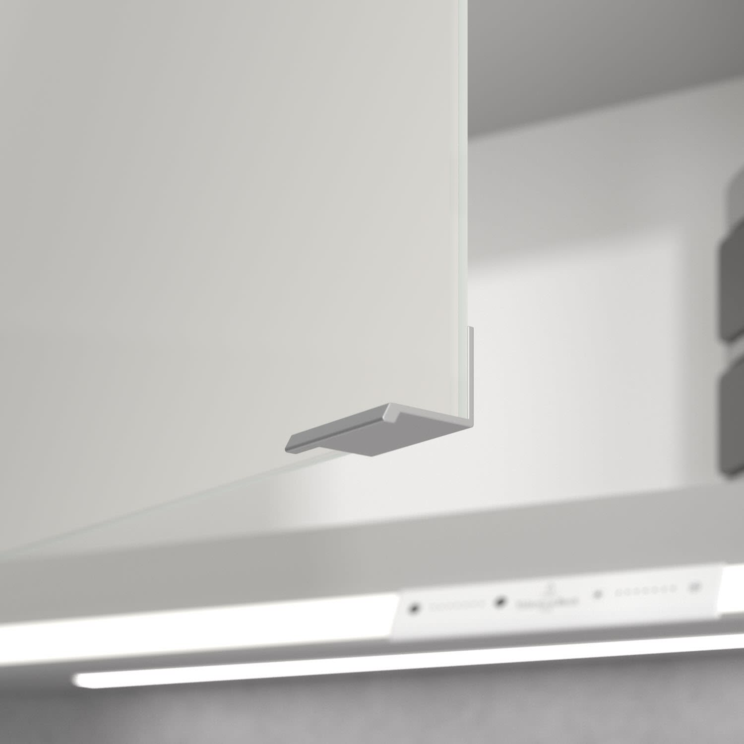 - praktische Extras: Aluminiumeinlegeböden mit praktischem Kippschutz, Vergrößerungsspiegel & Magnetleiste