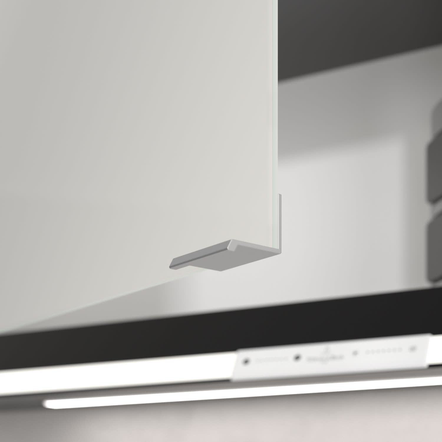 - praktische Extras: Aluminiumeinlegeböden mit praktischem Kippschutz, Vergrößerungsspiegel & Magnetleiste