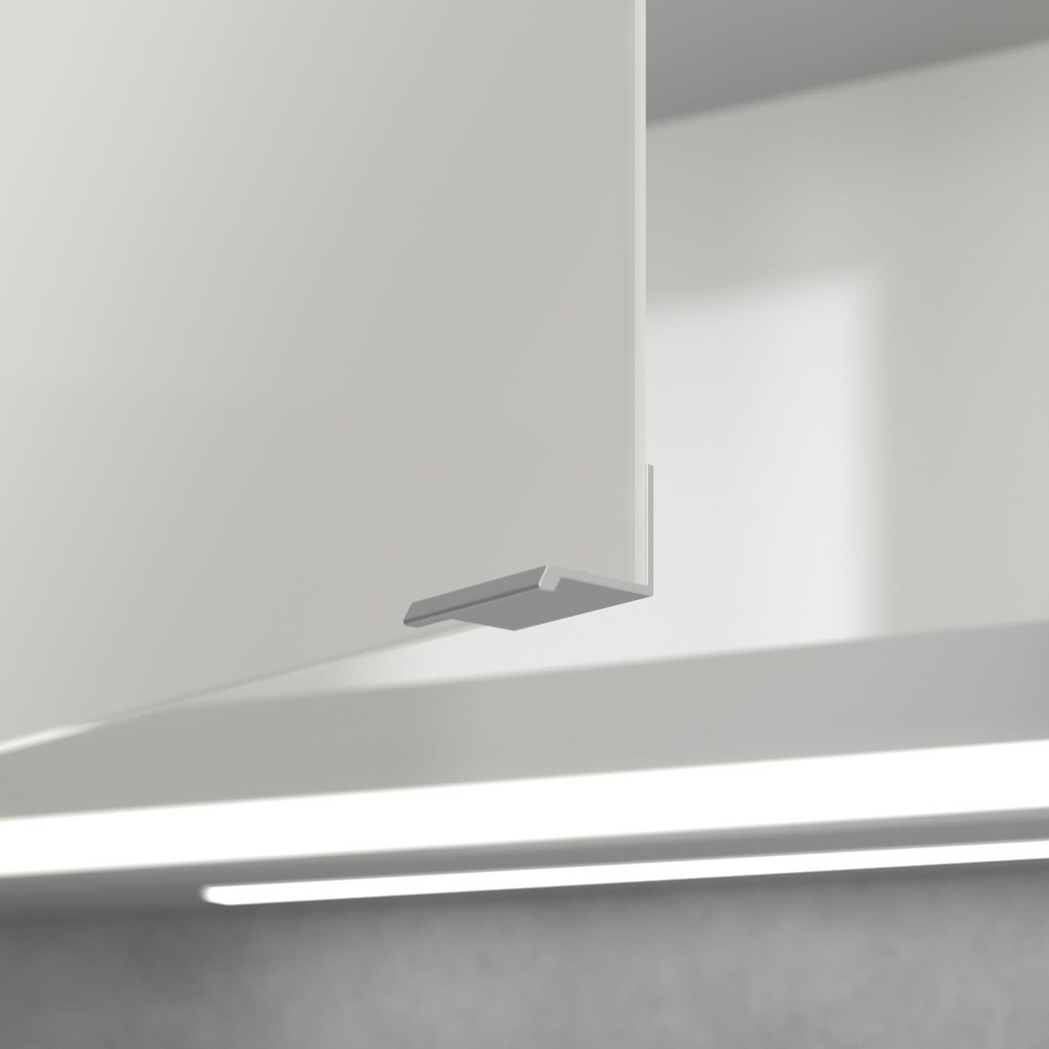 - praktische Extras: Aluminiumeinlegeböden mit praktischem Kippschutz, Vergrößerungsspiegel & Magnetleiste