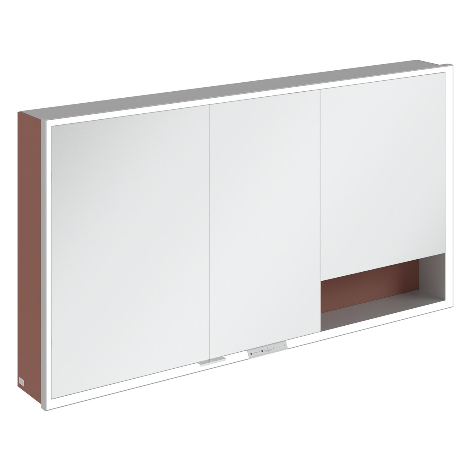 Durchdachtes Highlight für moderne Badgestaltung – Der My View+ Aufputz-Spiegelschrank von Villeroy & Boch bringt smarte Features und stilvolle Farbakzente ins Badezimmer und setzt neue Maßstäbe: mit geschlossenen und offenen Stauraumlösungen, einer farblich gestalteten Rückwand und dem sichtbaren Aluminiumkorpus in elegantem Silber. So setzen Sie ein individuelles Farb- und Designstatement im Bad.