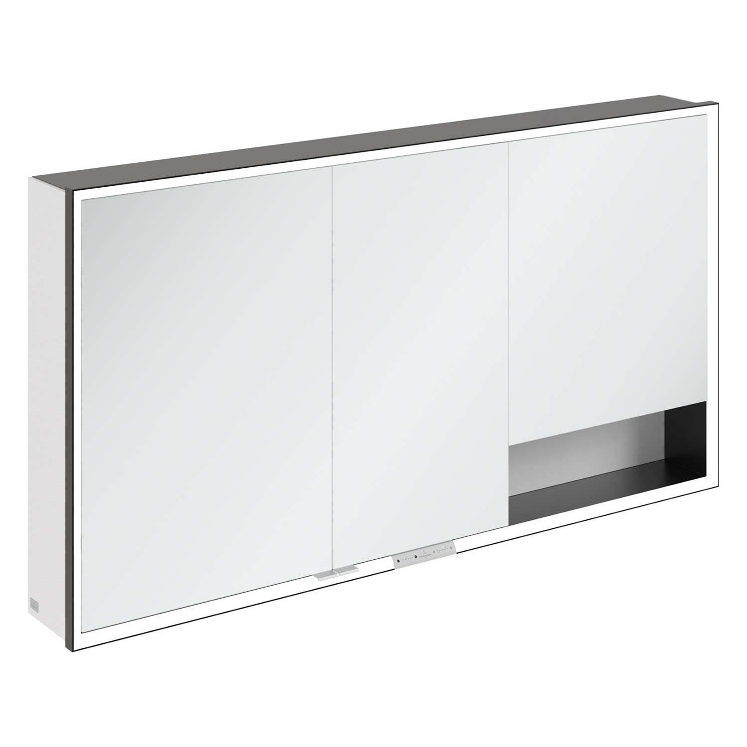 Durchdachtes Highlight für moderne Badgestaltung – Der My View+ Aufputz-Spiegelschrank von Villeroy & Boch bringt smarte Features und stilvolle Farbakzente ins Badezimmer und setzt neue Maßstäbe: mit geschlossenen und offenen Stauraumlösungen, einer farblich gestalteten Rückwand und dem sichtbaren Aluminiumkorpus in modernem Schwarz. So setzen Sie ein individuelles Farb- und Designstatement im Bad.