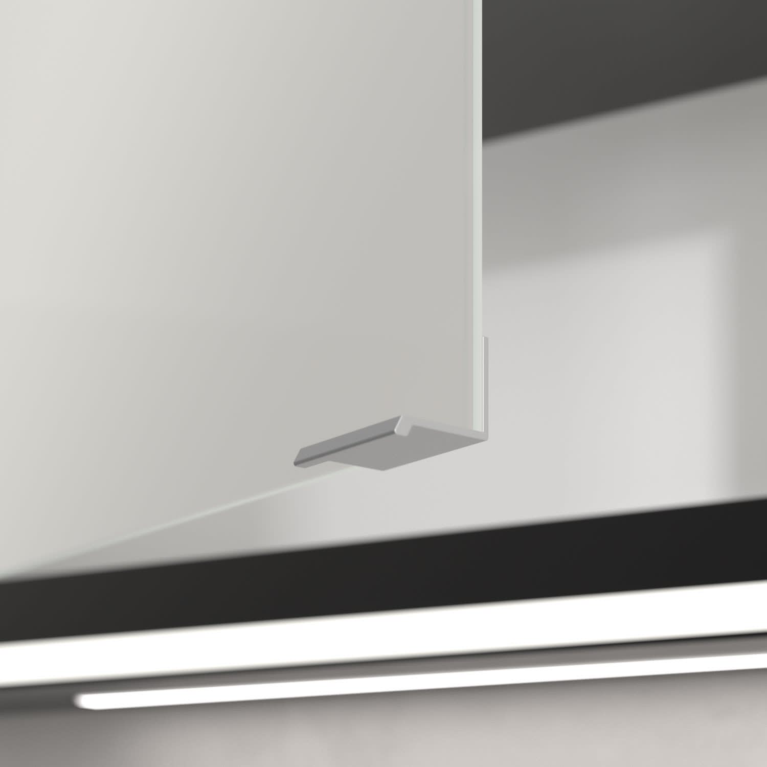 - praktische Extras: Aluminiumeinlegeböden mit praktischem Kippschutz, Vergrößerungsspiegel & Magnetleiste