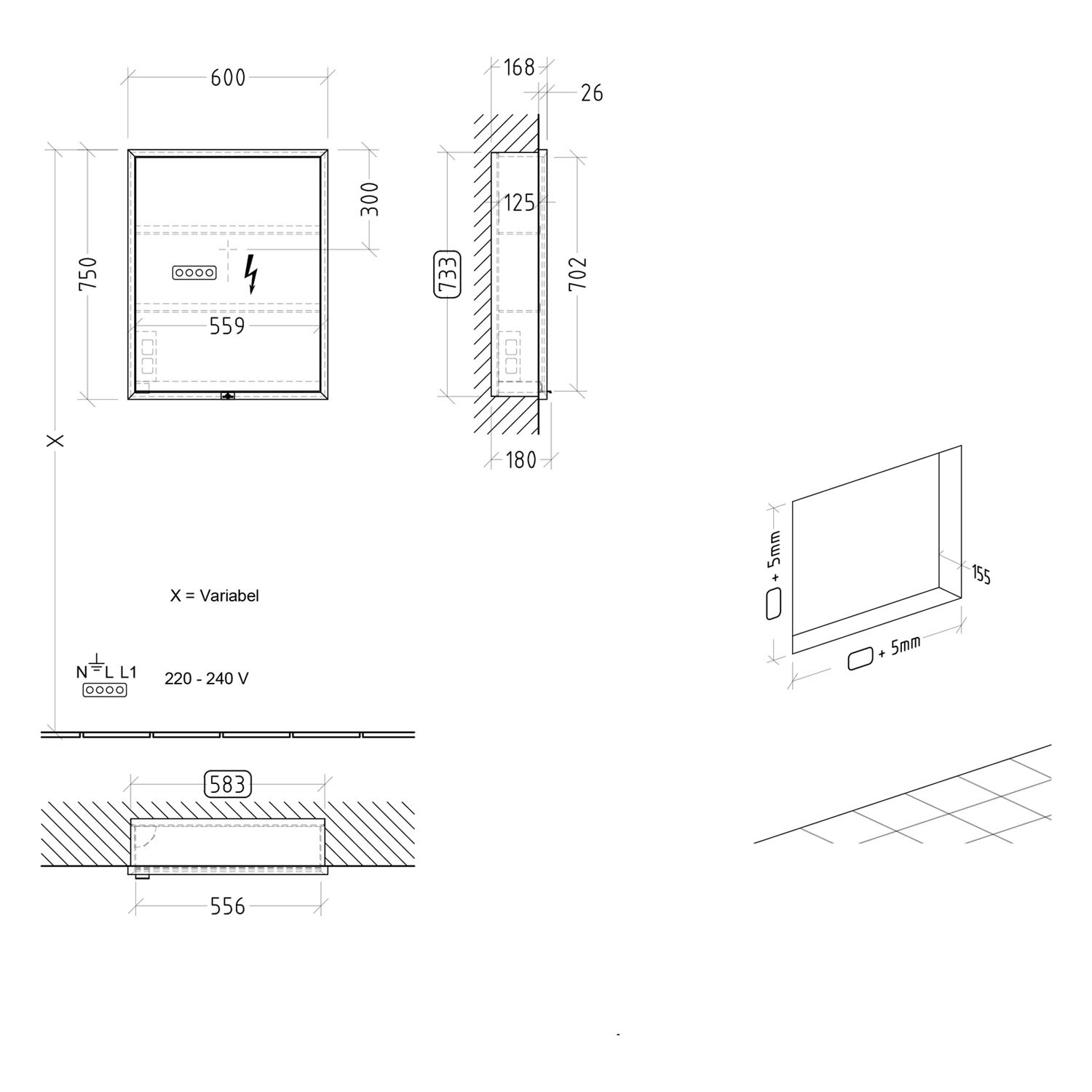 - praktische Extras: Aluminiumeinlegeböden mit praktischem Kippschutz, Vergrößerungsspiegel & Magnetleiste