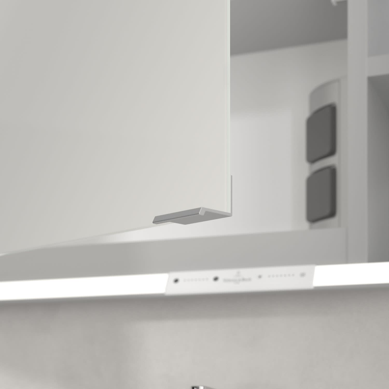 - praktische Extras: Aluminiumeinlegeböden mit praktischem Kippschutz, Vergrößerungsspiegel & Magnetleiste