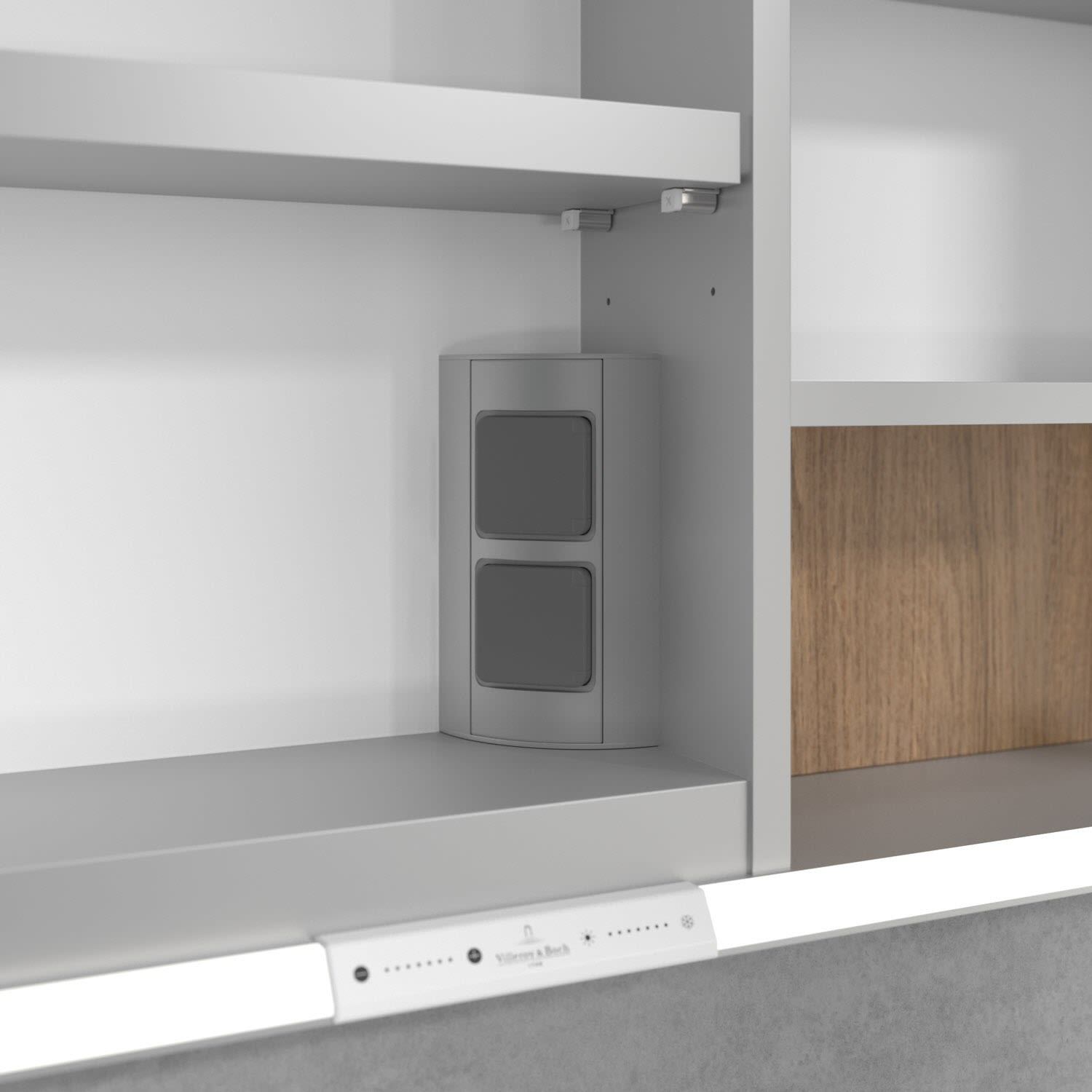 - praktische Extras: Aluminiumeinlegeböden mit praktischem Kippschutz, Vergrößerungsspiegel & Magnetleiste