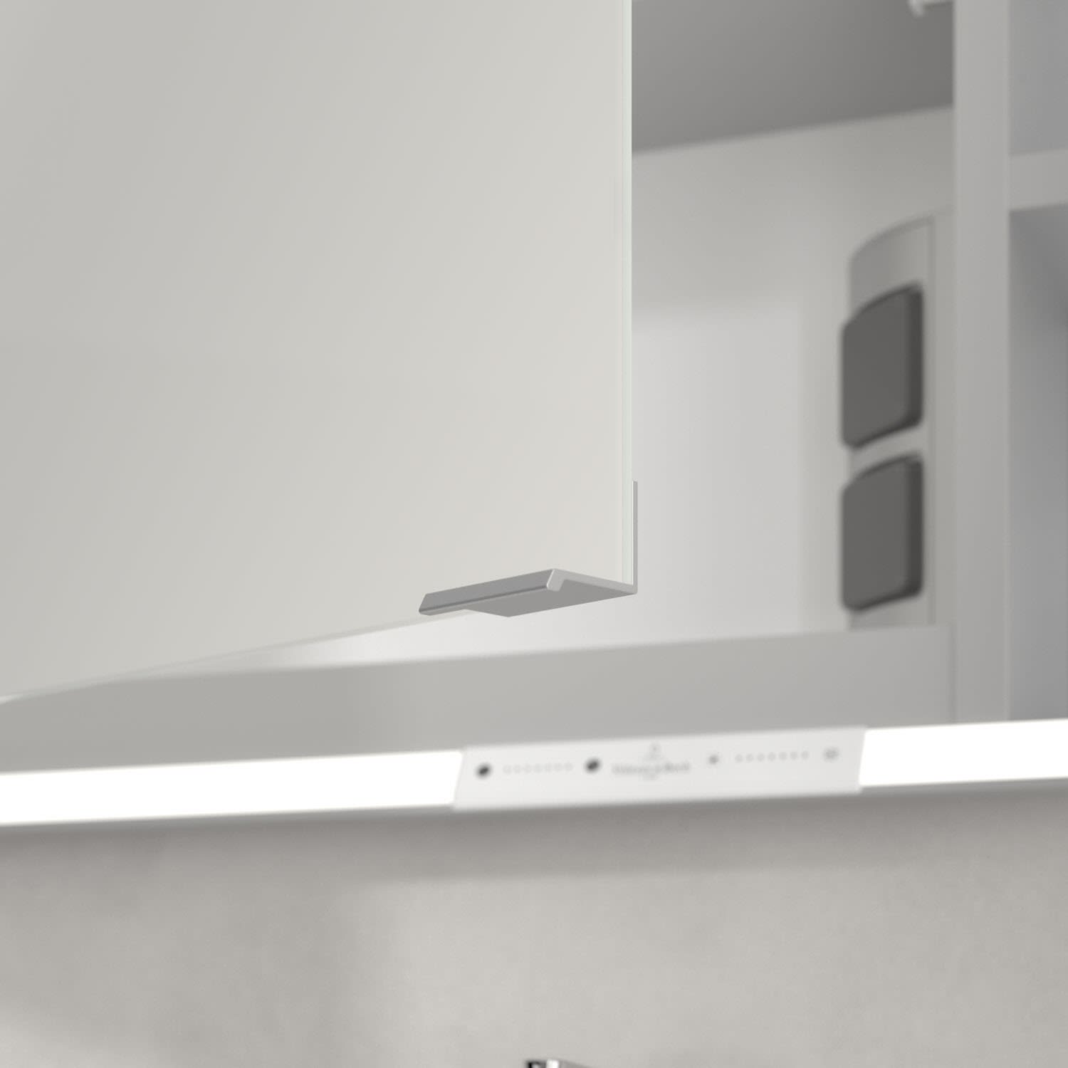- praktische Extras: Aluminiumeinlegeböden mit praktischem Kippschutz, Vergrößerungsspiegel & Magnetleiste