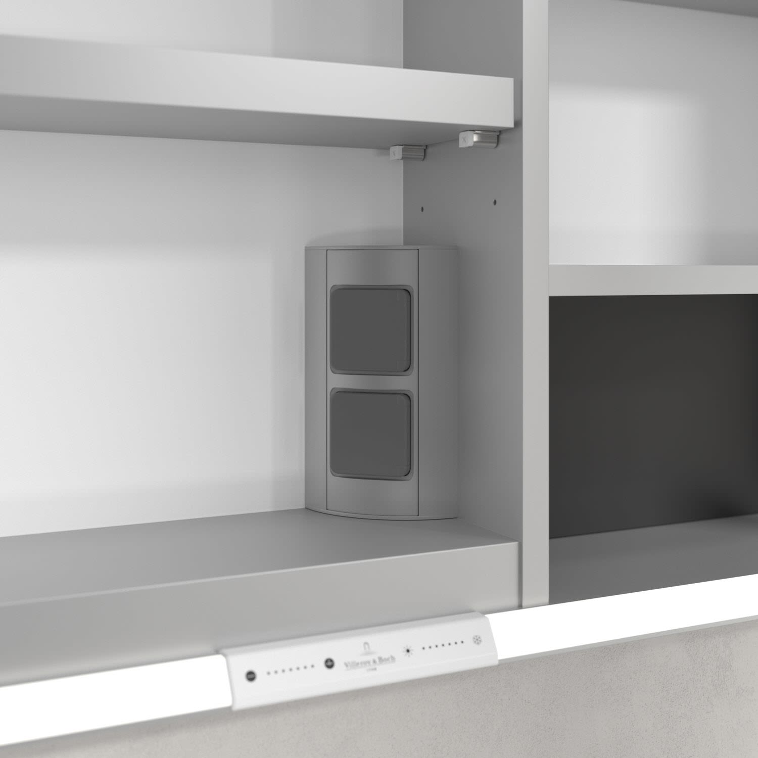 - praktische Extras: Aluminiumeinlegeböden mit praktischem Kippschutz, Vergrößerungsspiegel & Magnetleiste