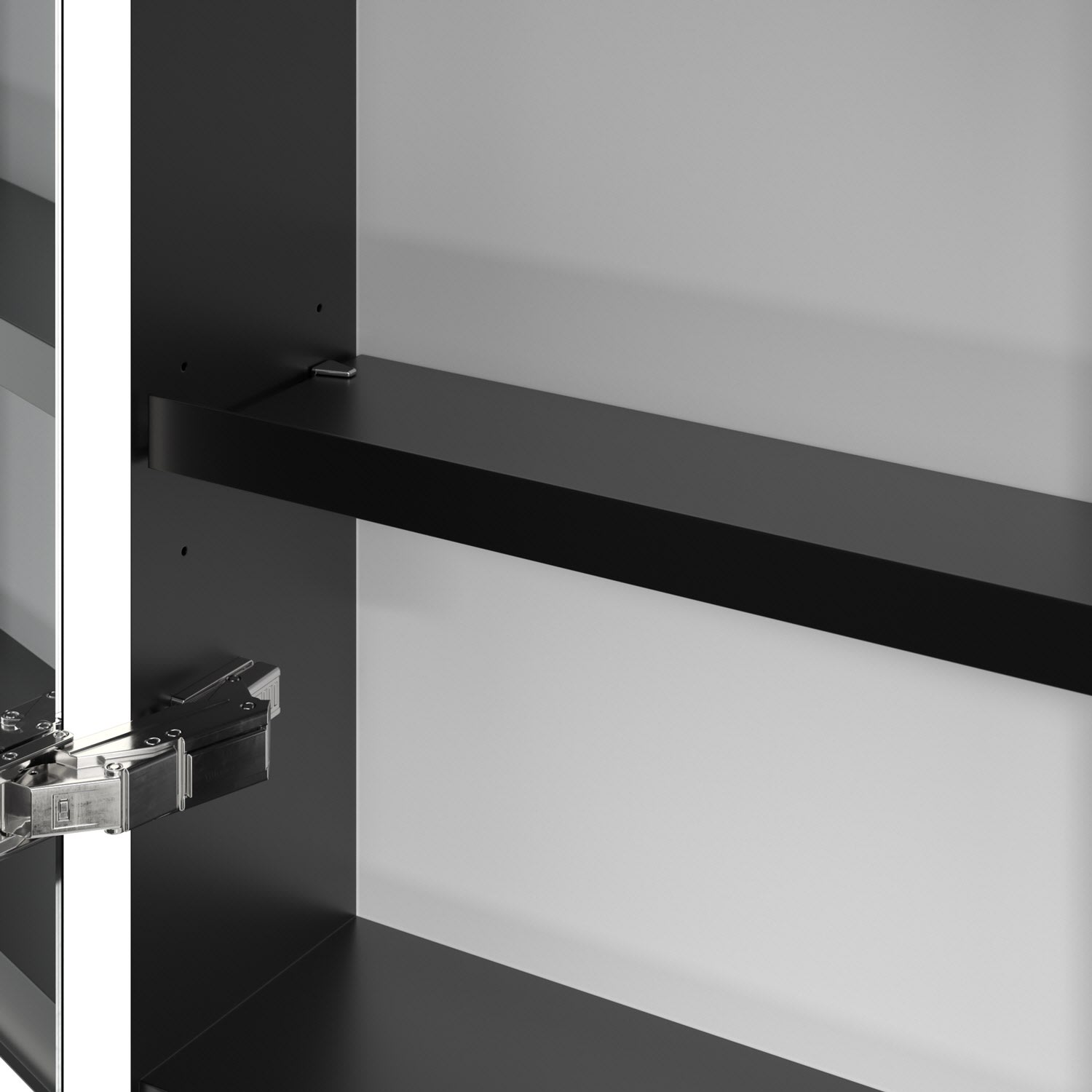 - praktische Extras: Aluminiumeinlegeböden mit praktischem Kippschutz, Vergrößerungsspiegel & Magnetleiste