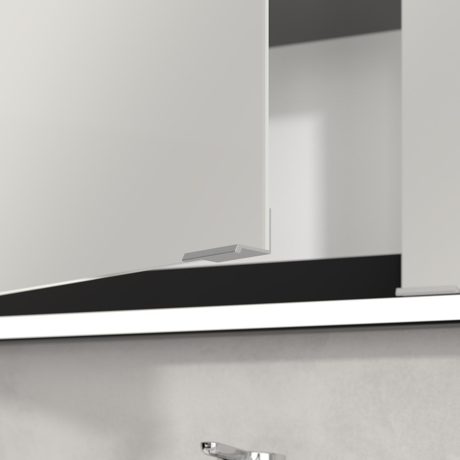 - praktische Extras: Aluminiumeinlegeböden mit praktischem Kippschutz, Vergrößerungsspiegel & Magnetleiste