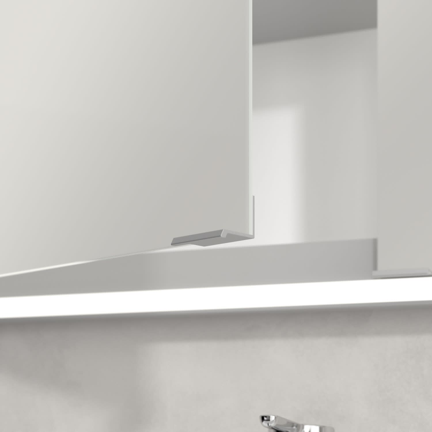 - praktische Extras: Aluminiumeinlegeböden mit praktischem Kippschutz, Vergrößerungsspiegel & Magnetleiste
