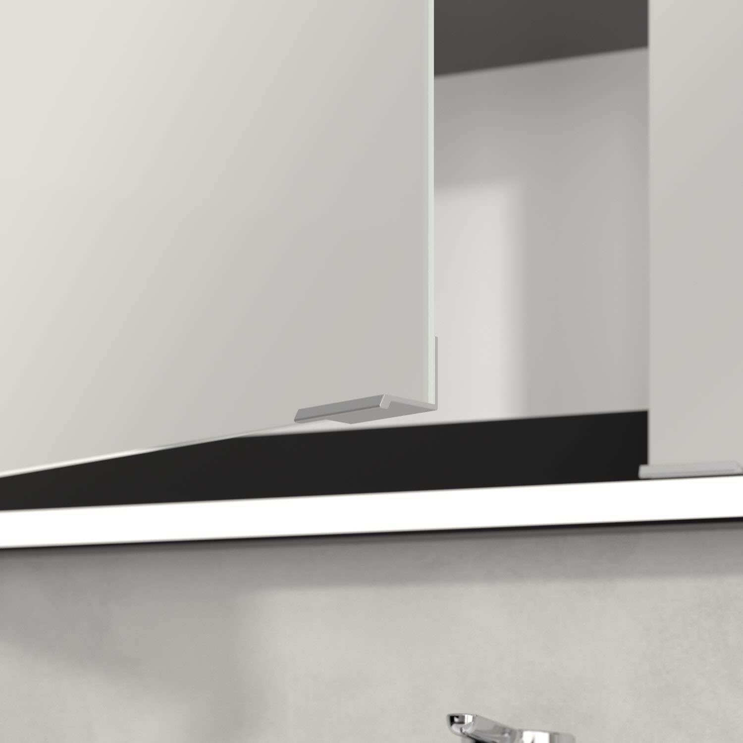 - praktische Extras: Aluminiumeinlegeböden mit praktischem Kippschutz, Vergrößerungsspiegel & Magnetleiste