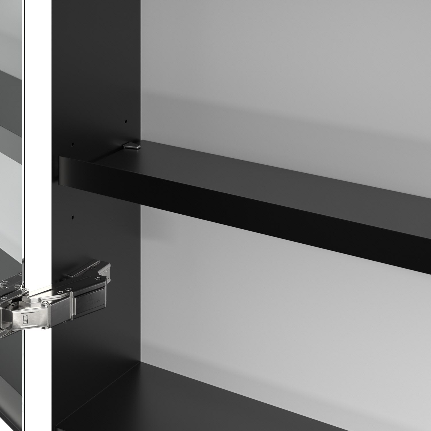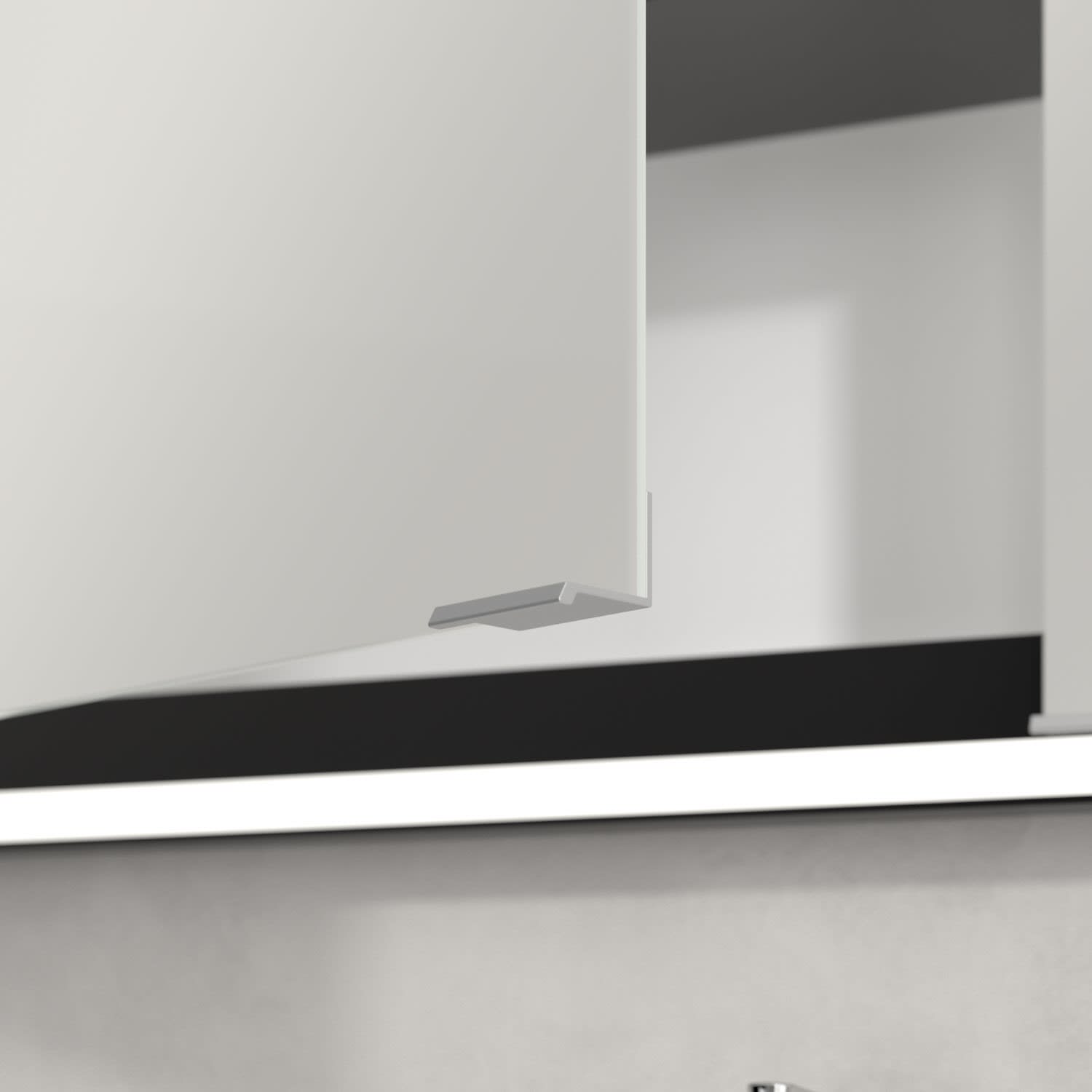 - praktische Extras: Aluminiumeinlegeböden mit praktischem Kippschutz, Vergrößerungsspiegel & Magnetleiste
