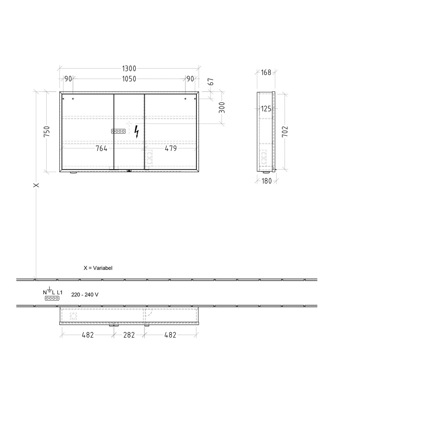 - Leuchtmittel: 1x LED-Hauptbeleuchtung / 38,88 W, 1x LED-Waschplatzbeleuchtung / 6,84 W