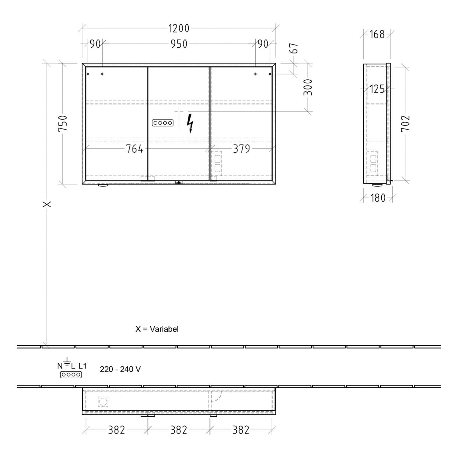 - Leuchtmittel: 1x LED-Hauptbeleuchtung / 36,96 W, 1x LED-Waschplatzbeleuchtung / 6,12 W