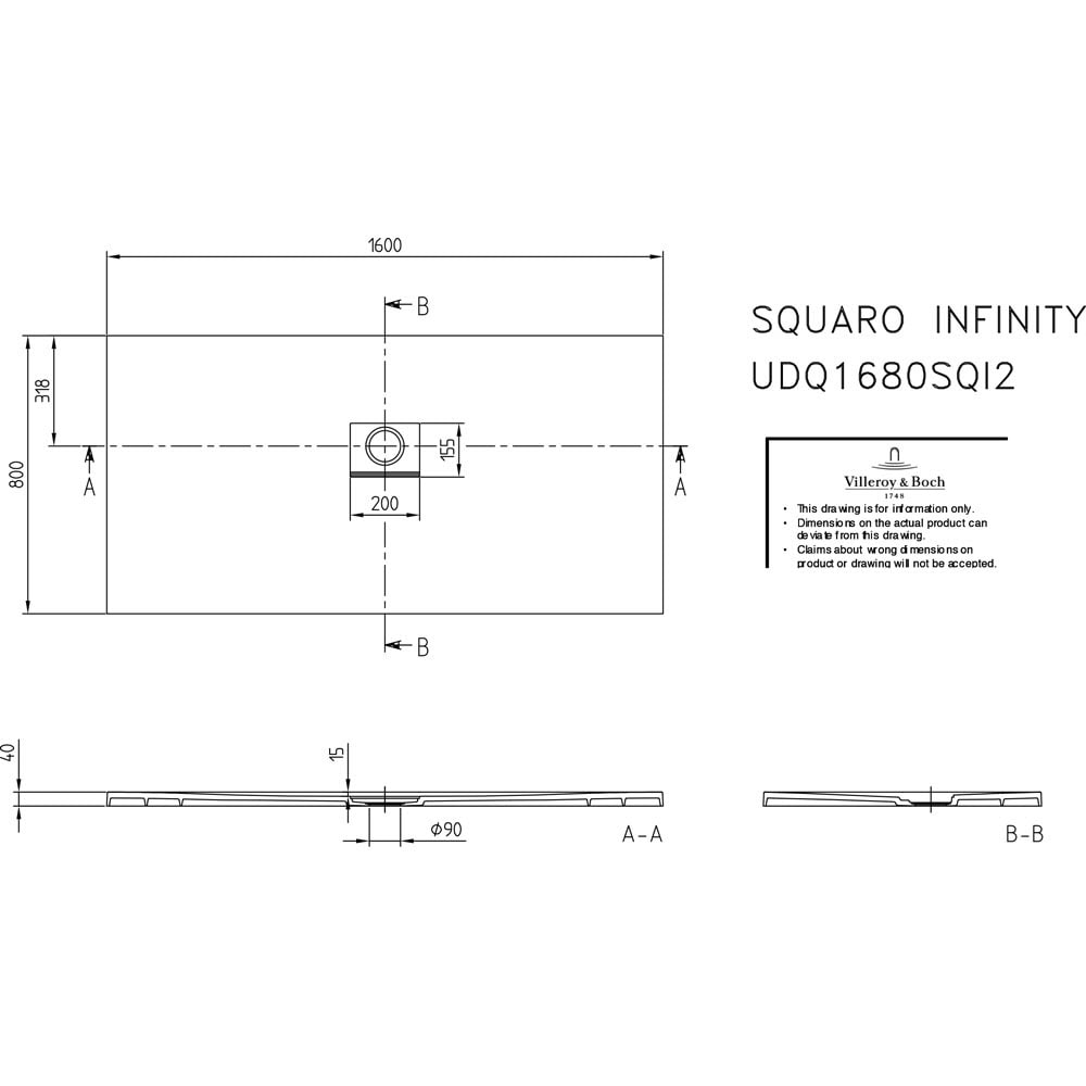 Villeroy & Boch Squaro Infinity Duschwanne 160 x 80 cm