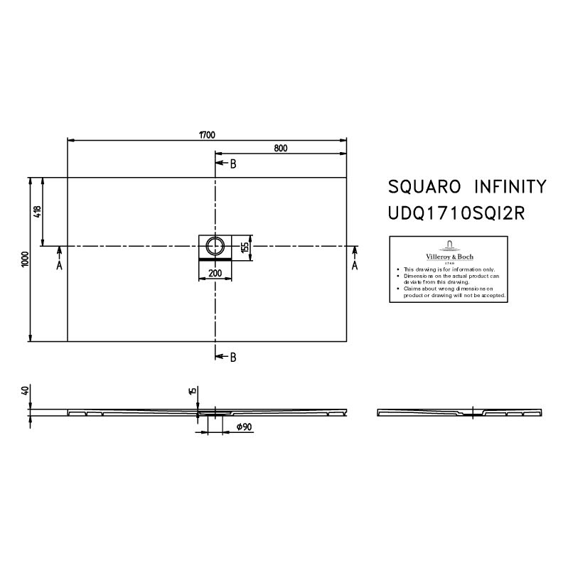 Villeroy & Boch Squaro Infinity Duschwanne, 170 x 100 cm
