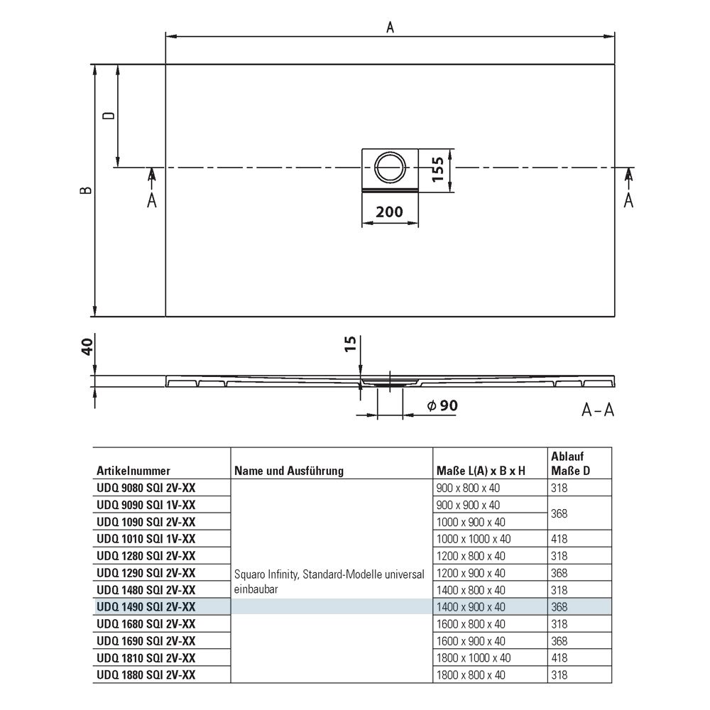- inklusive Ablaufabdeckung in passender Farbe (matt)