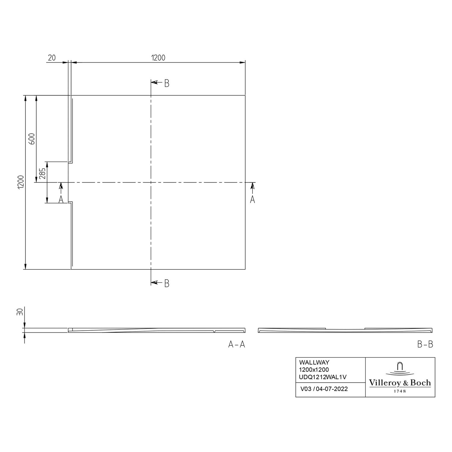 Villeroy & Boch Wallway Duschwanne 120 x 120 x 3 cm